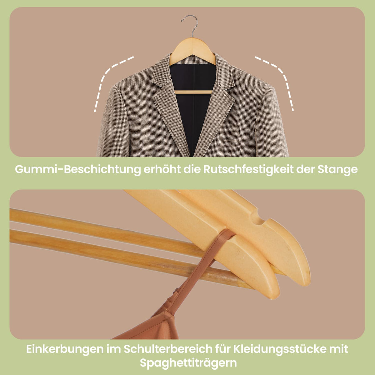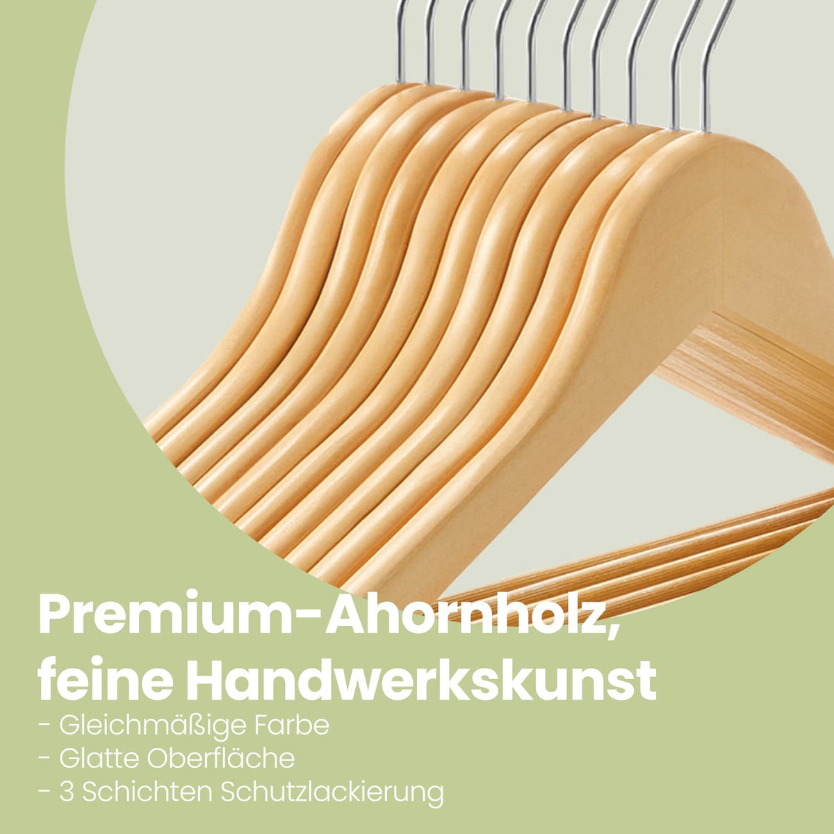 Houten kledinghangers, set van 10, massief houten hangers 44,5 x 23 x 1,2 cm - CRWB35001-10
