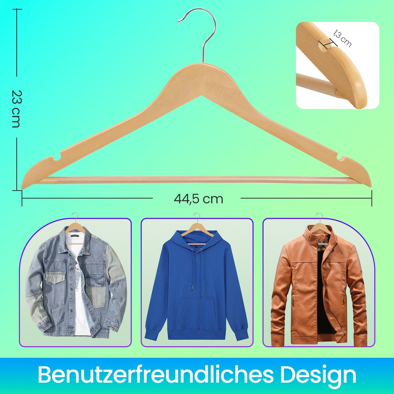 Houten kledinghangers, set van 20, massief houten hangers 44,5 x 1,2 x 23 cm - CRWB35001N01