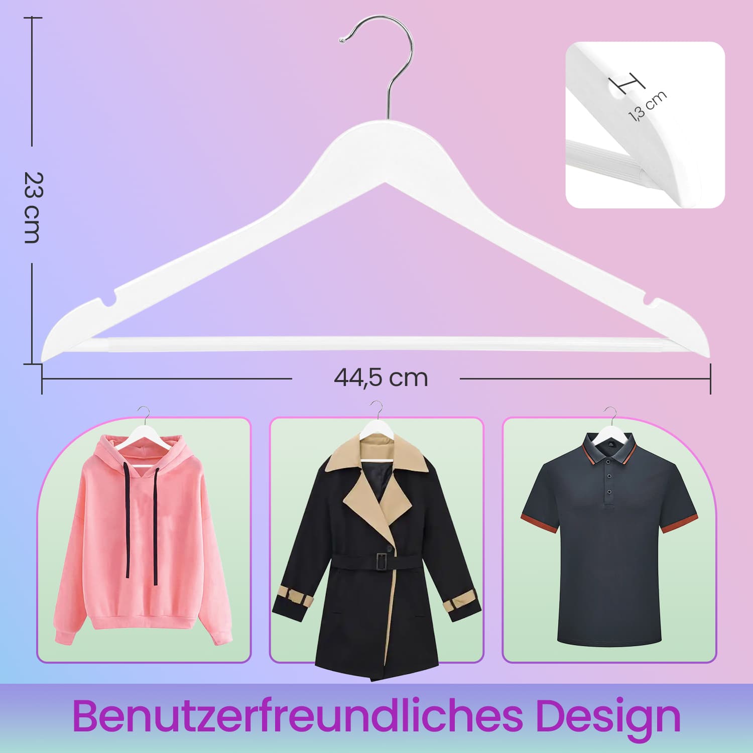 Houten kledinghangers, set van 50, massief houten hangers 44,5 x 23 x 1,2 cm - CRWB3503W-50