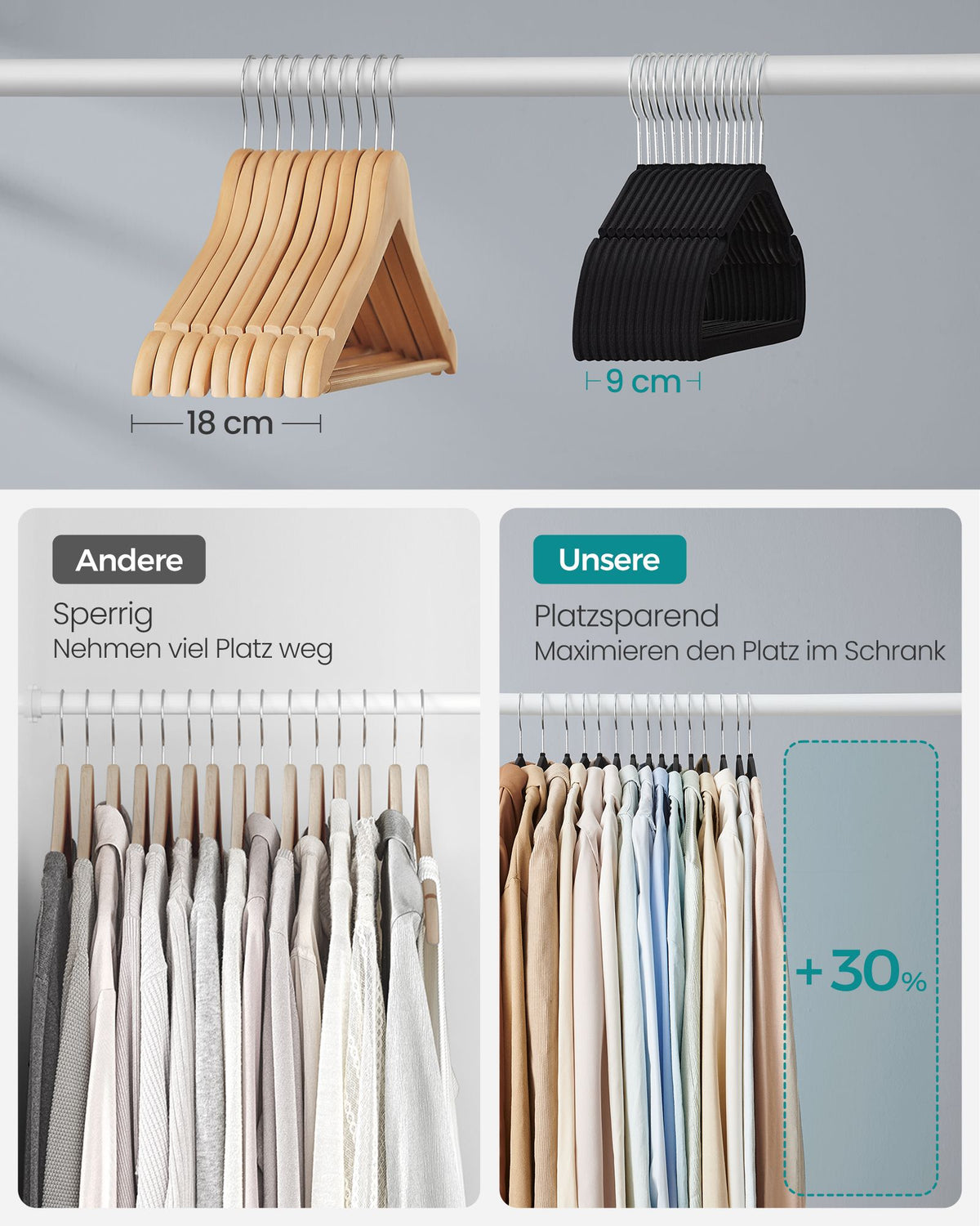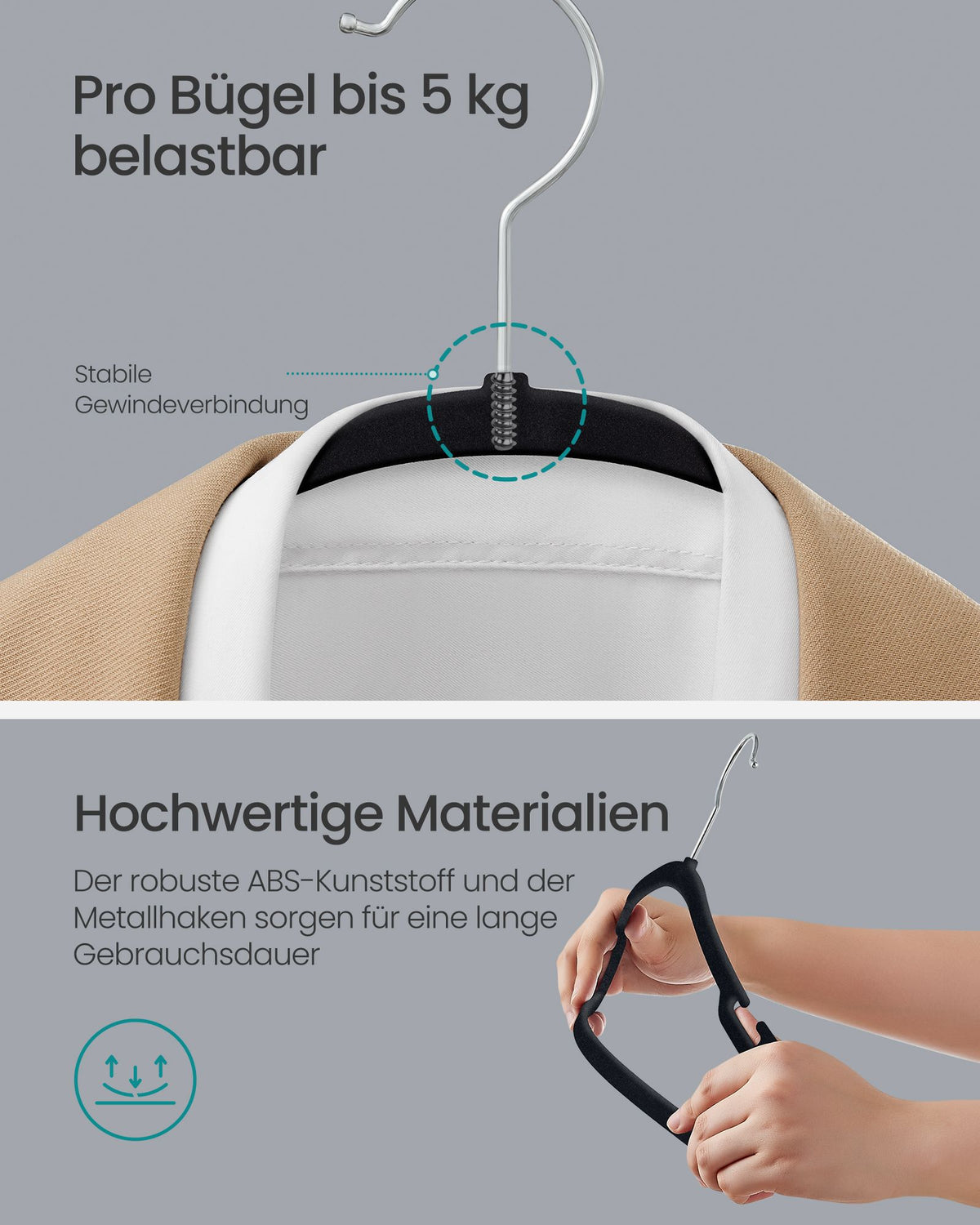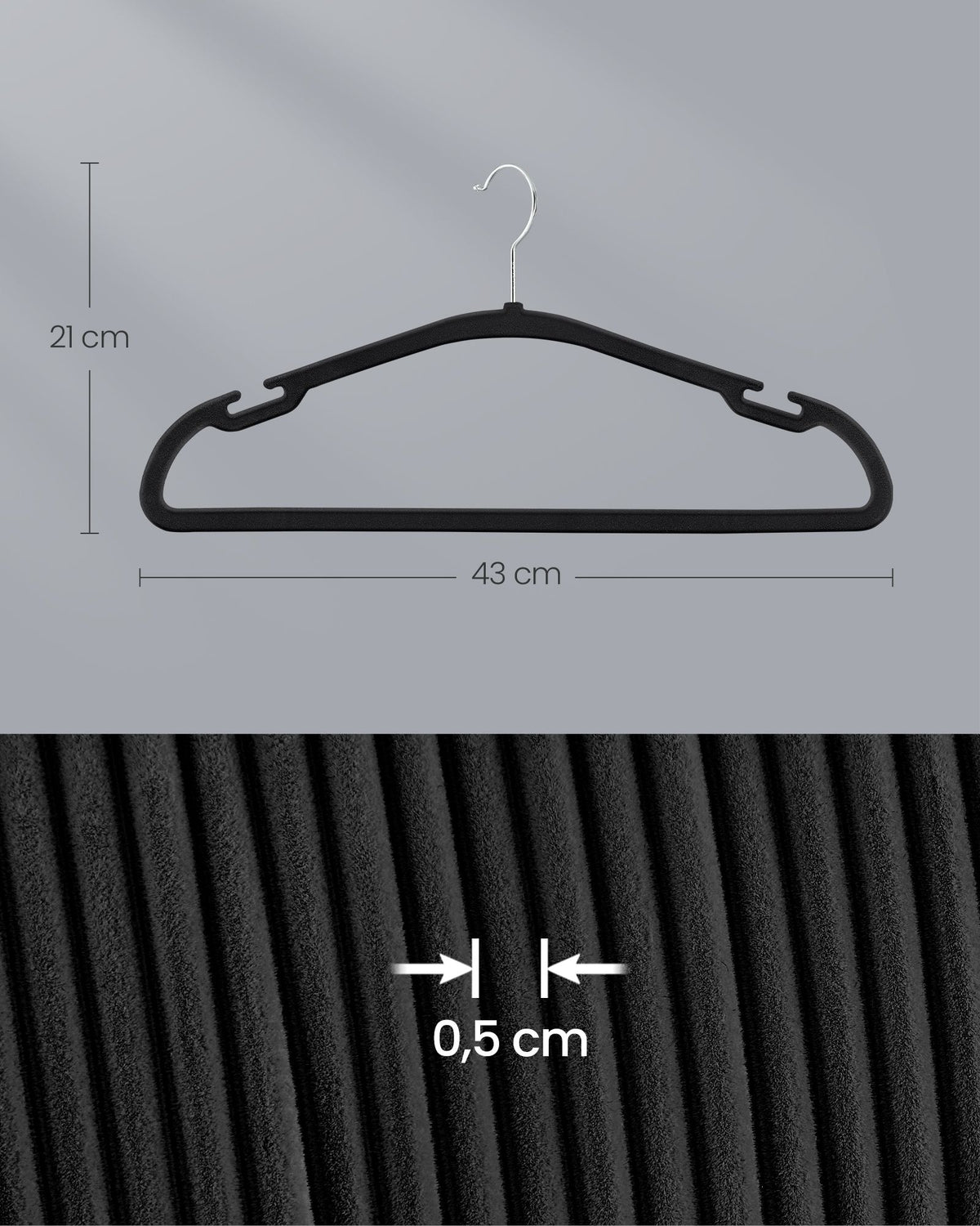 Kledinghangers set van 50, 43 x 21 cm, inktzwart