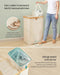 Wasmand met twee compartimenten en deksel, crèmewit en naturel beige 5 x 75 cm