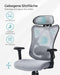 Bureaustoel ergonomisch opklapbaar armleuningen mistblauw 53 cmBureaustoel ergonomisch opklapbaar armleuningen mistblauw 53 cm