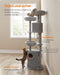 Grote krabpaal 196 cm hoog met grote plateaus lichtgrijsGrote krabpaal 196 cm hoog met grote plateaus lichtgrijs