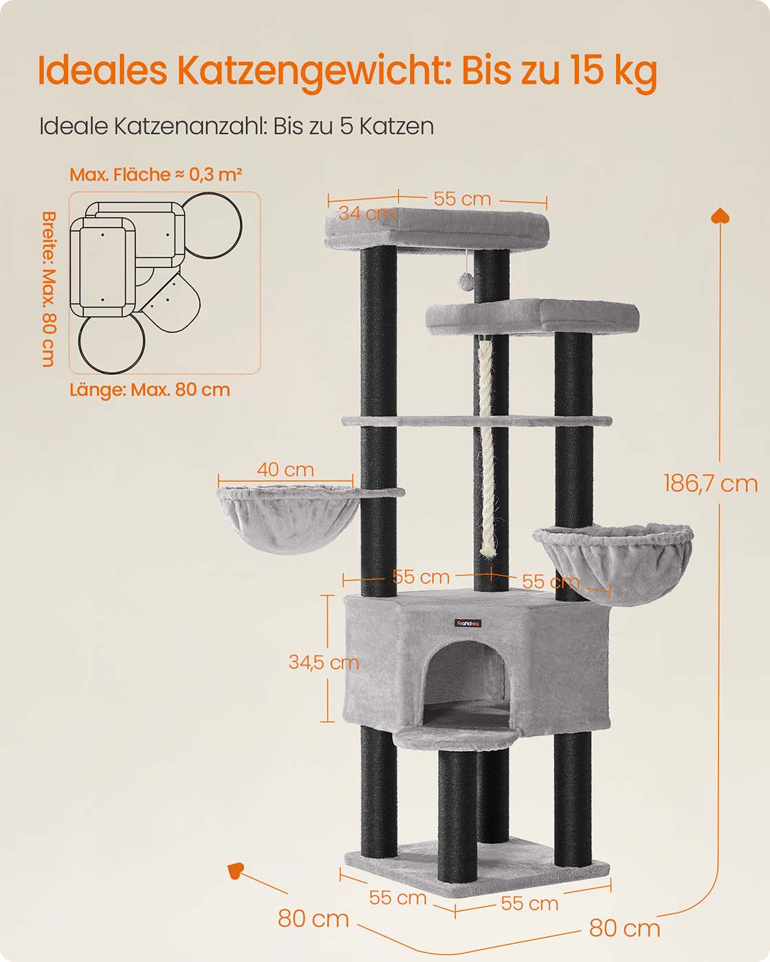 Grote kattenboom met meerdere niveaus voor meerdere grote katten 7 cm - PCT008G02