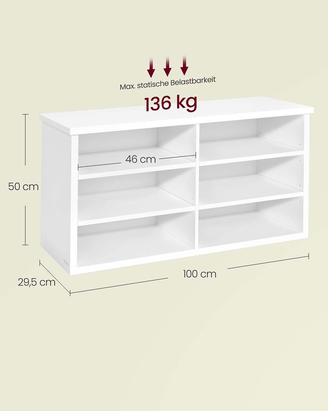 Schoenenbank met opbergruimte en verstelbare planken 5 x 100 x 50 cm - LSB036W01