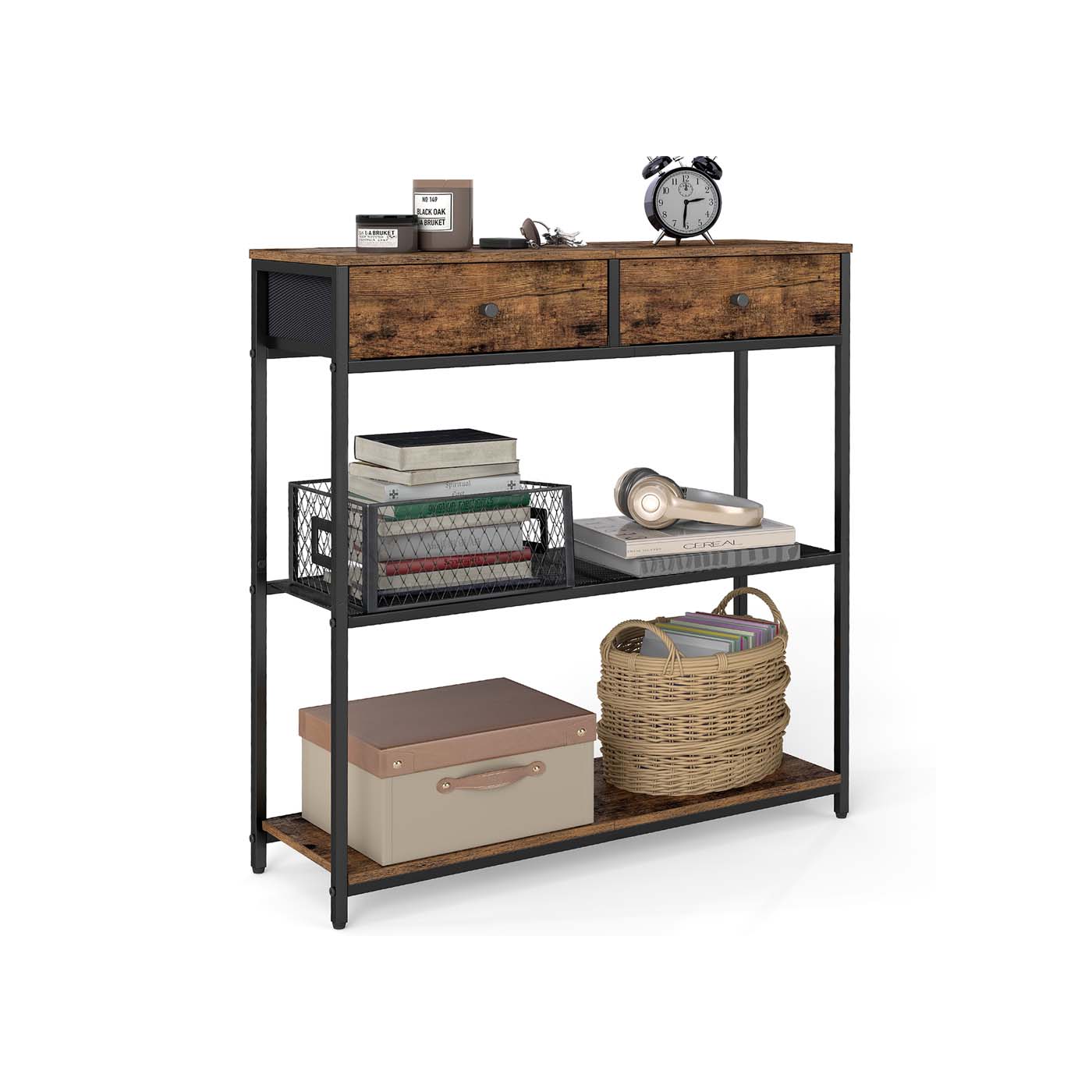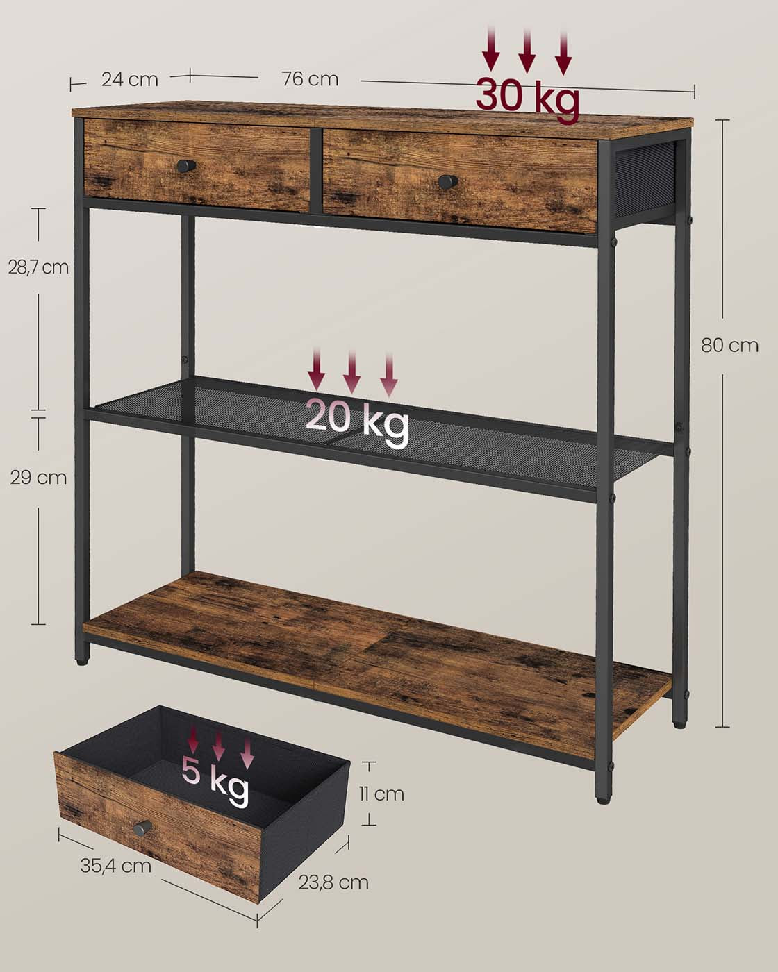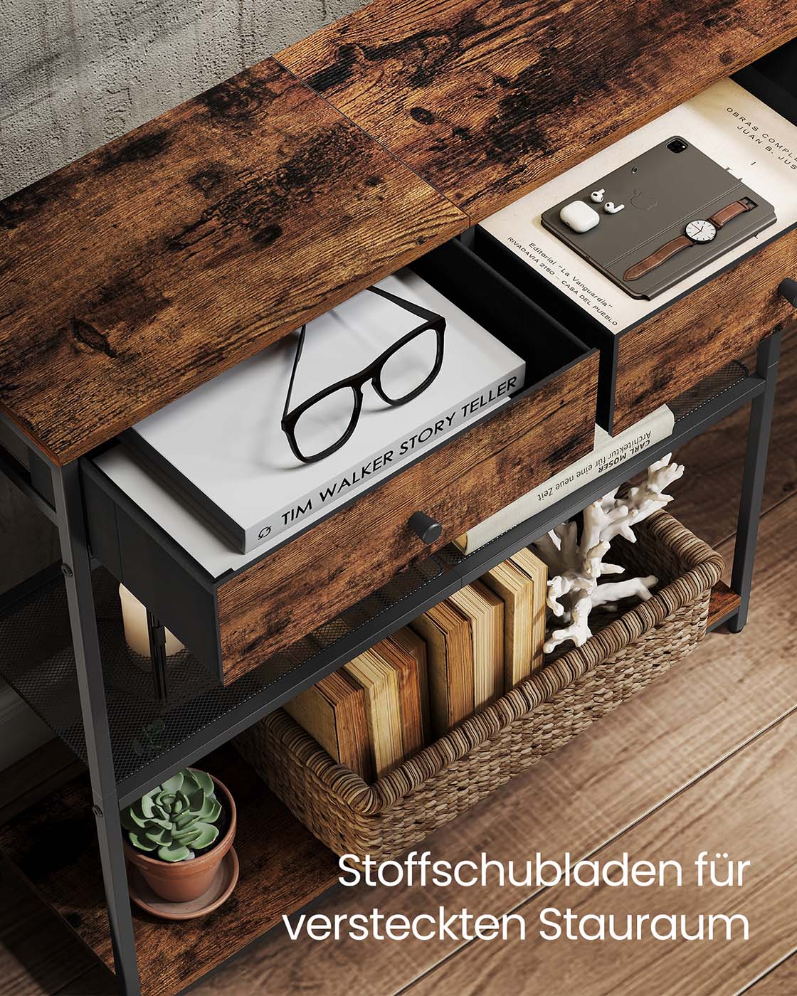 Smalle consoletafel met twee stoffen lades 24 x 76 x 80 cm - LNT092K01
