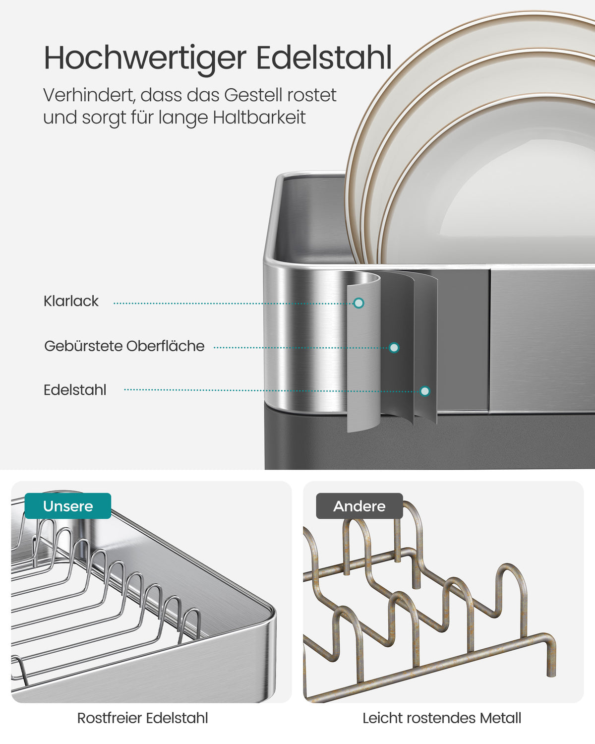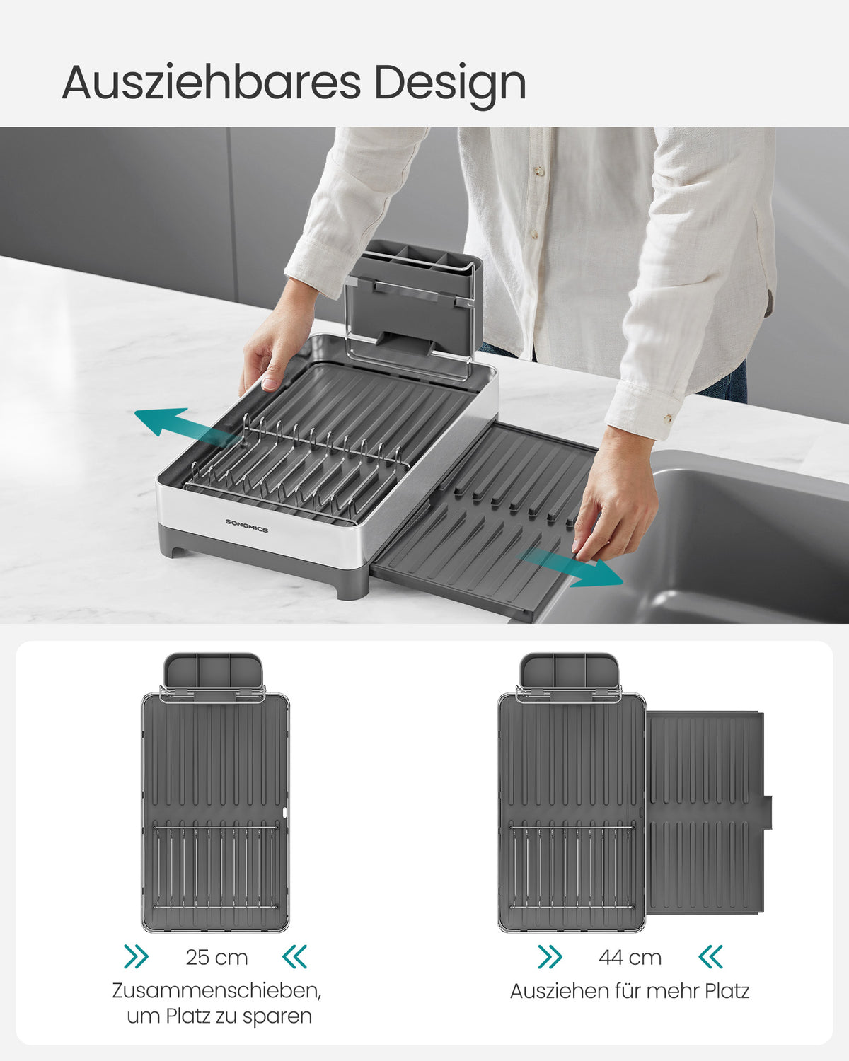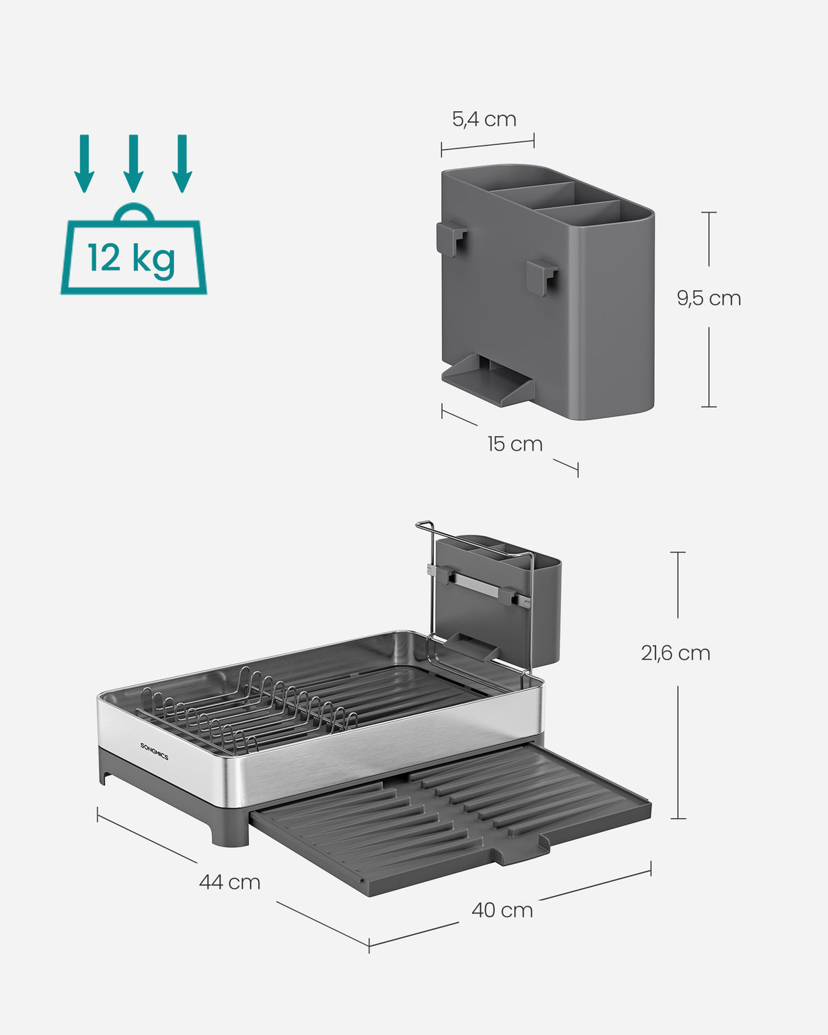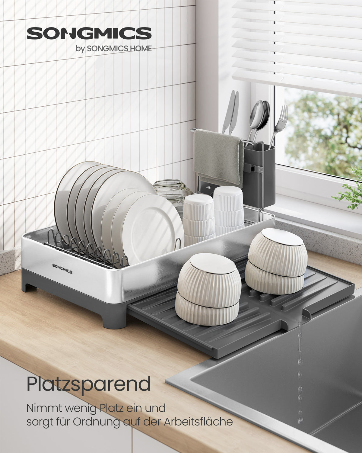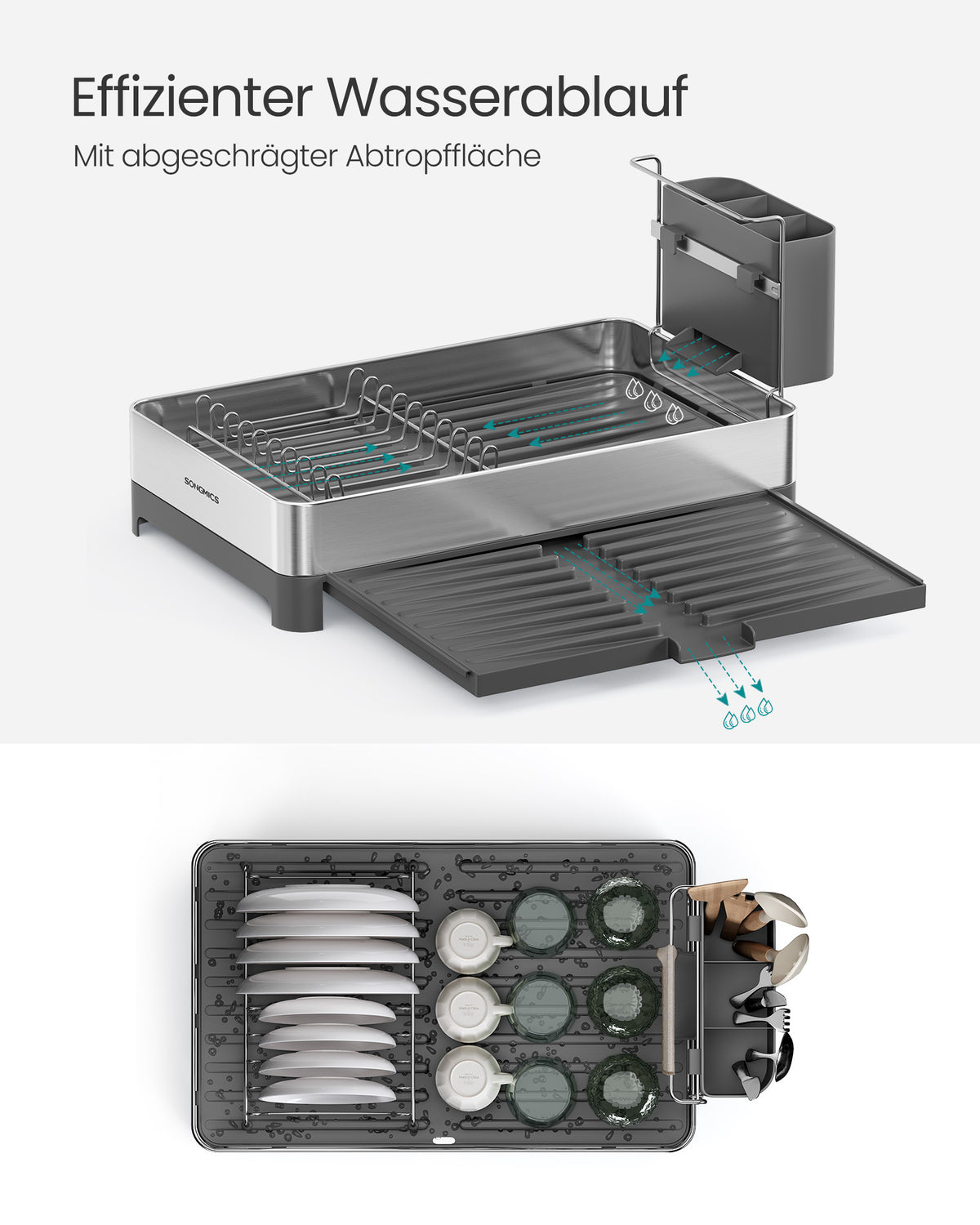 Afdruiprek met keukengereihouder zilvergrijs 6 cm