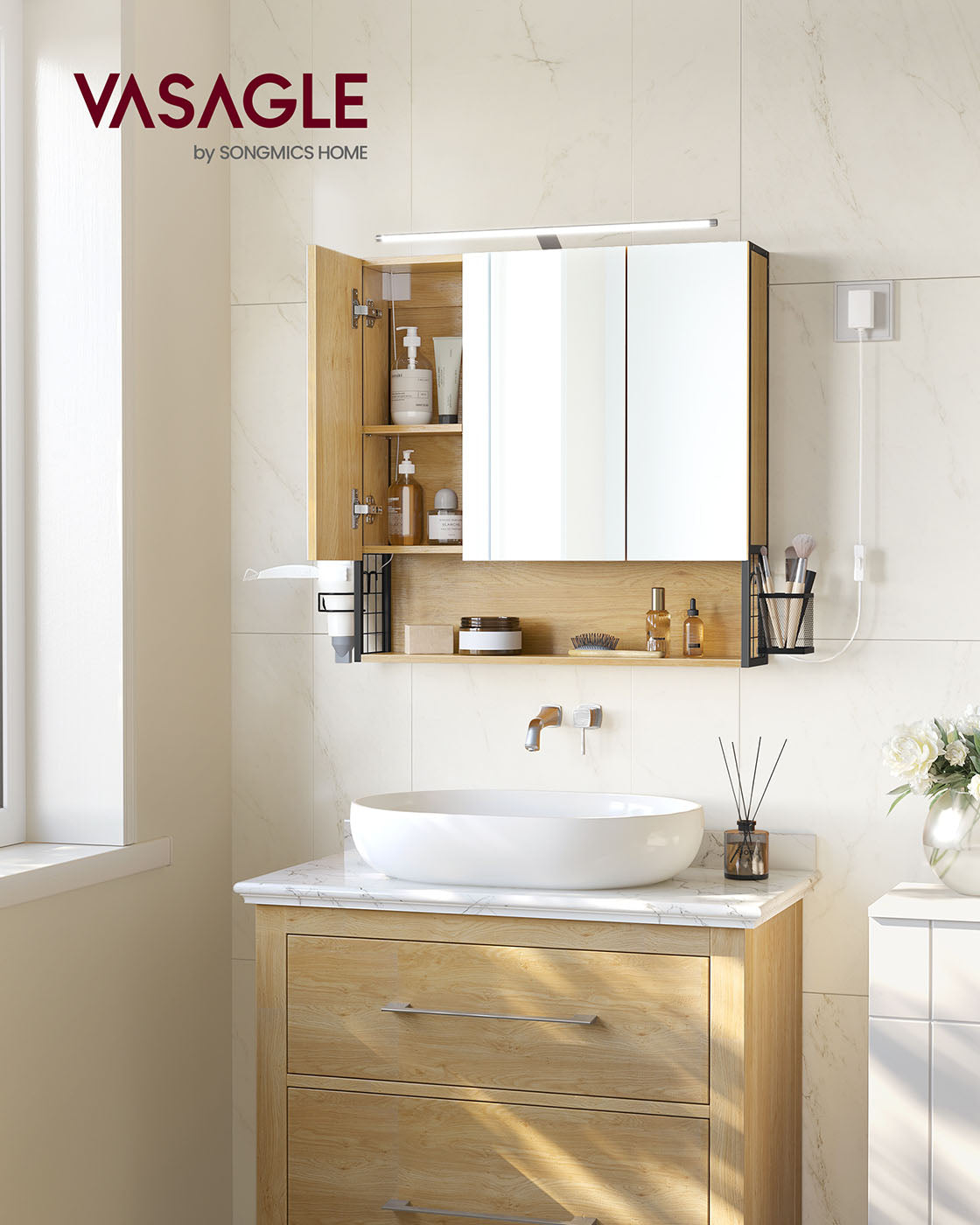 Badkamermeubel met LED-verlichting 14,5 x 70 x 70 cm natuurlijk eiken