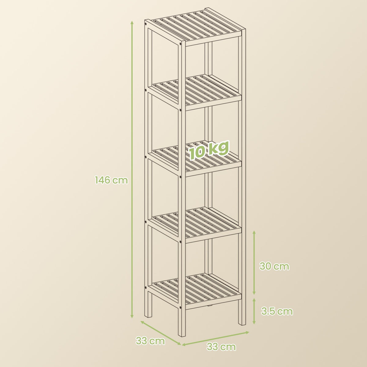 Badkamerplank 5 niveaus, smalle staande plank, multifunctionele opbergplank 33 x 33 x 146 cm - BCBB3555Y
