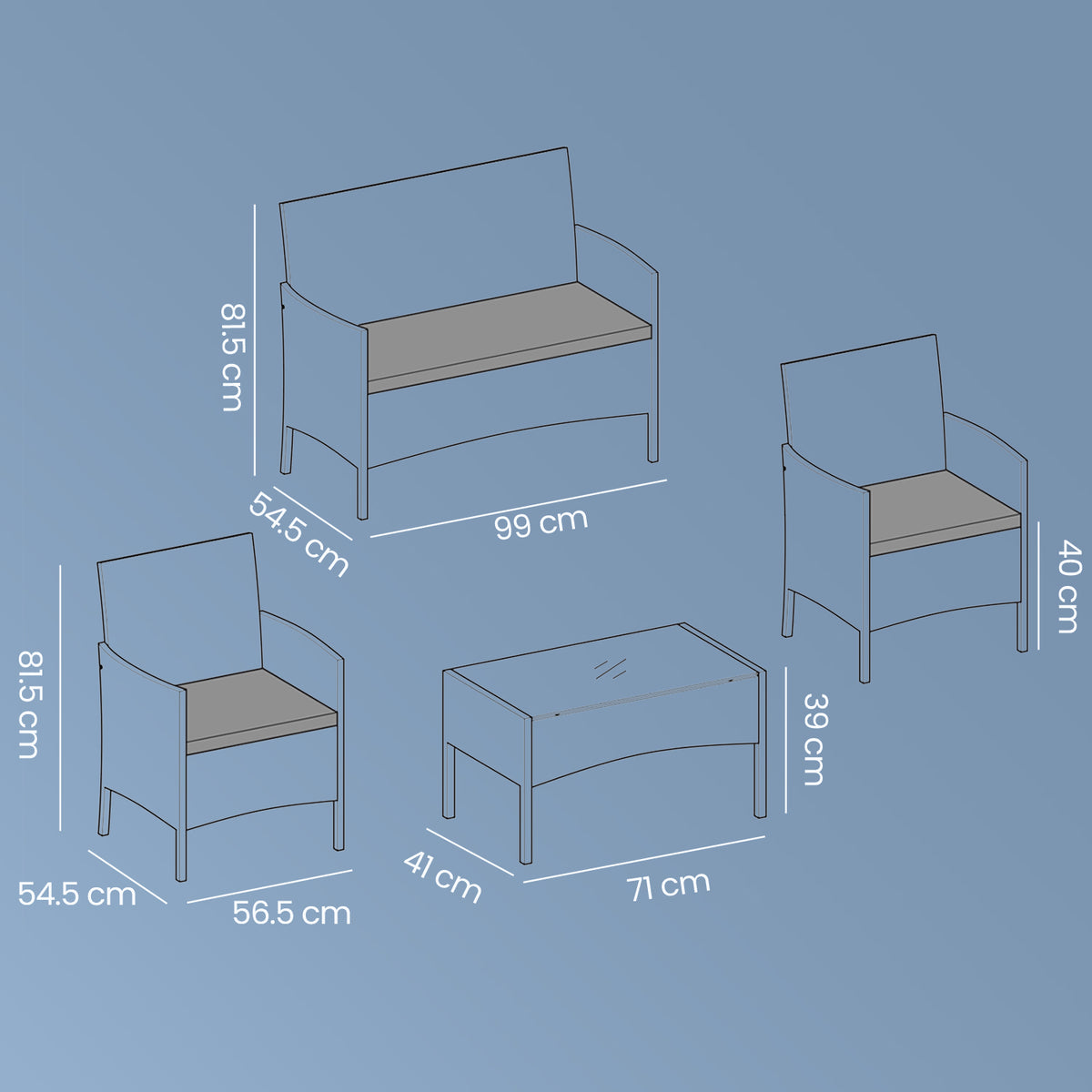 Balkonmeubel, tuinmeubelset, gemaakt van PE polyrotan 5 cm