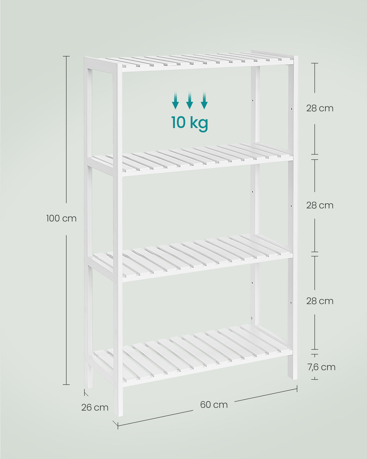 Bamboe badkamerplank 26 x 60 x 100 cm wit