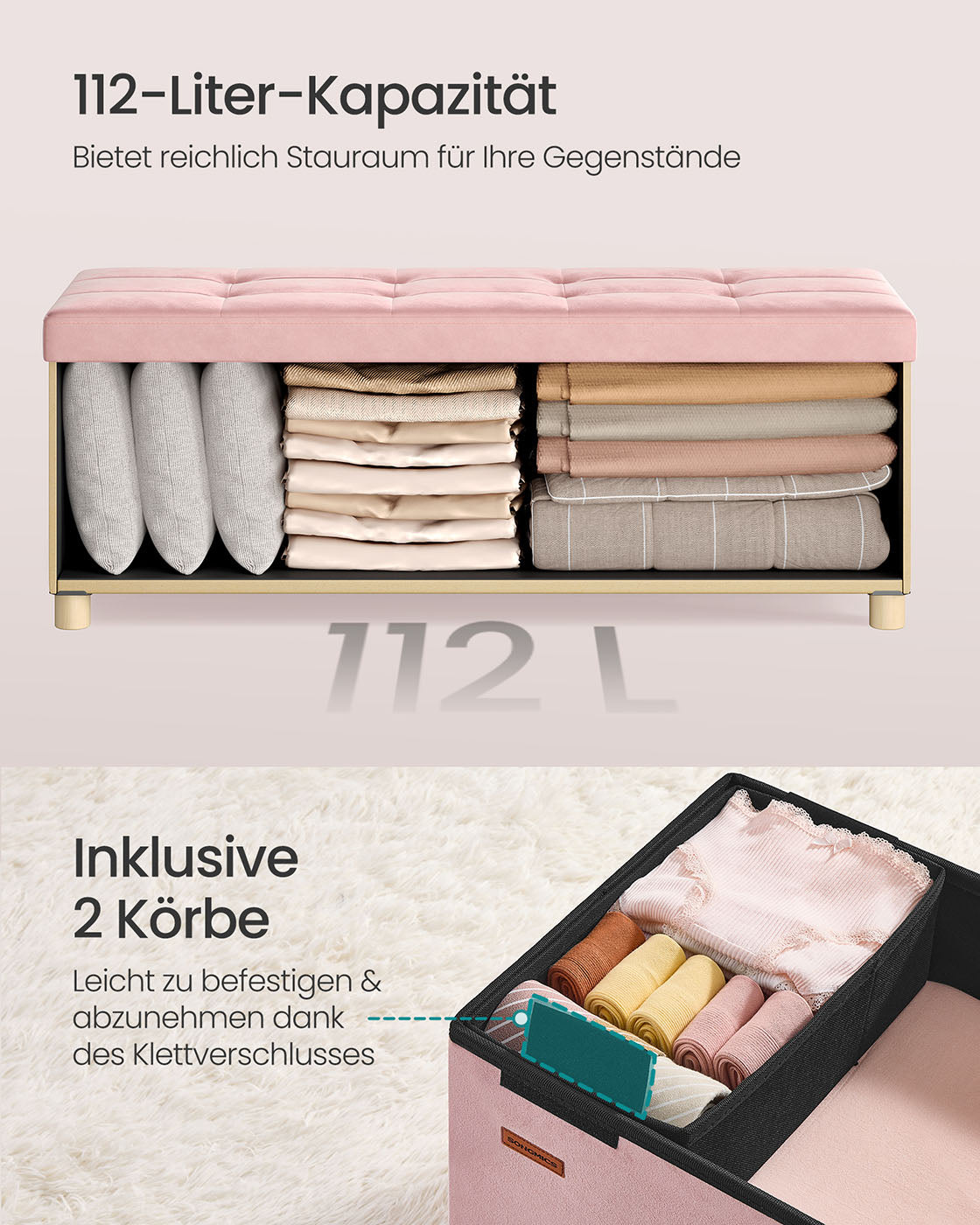 Bank met opbergruimte 38 x 110 x 40 cm Voetenbank 112 L pastelroze