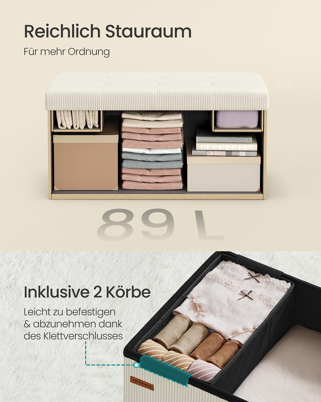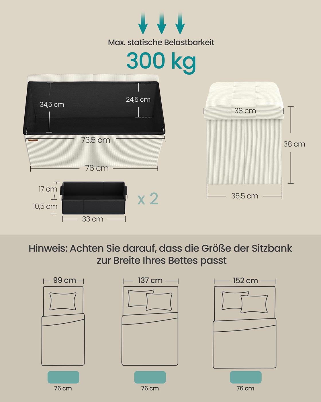 Bank met opbergruimte en opvouwbaar ontwerp 38 x 76 x 38 cm - LSF603W01