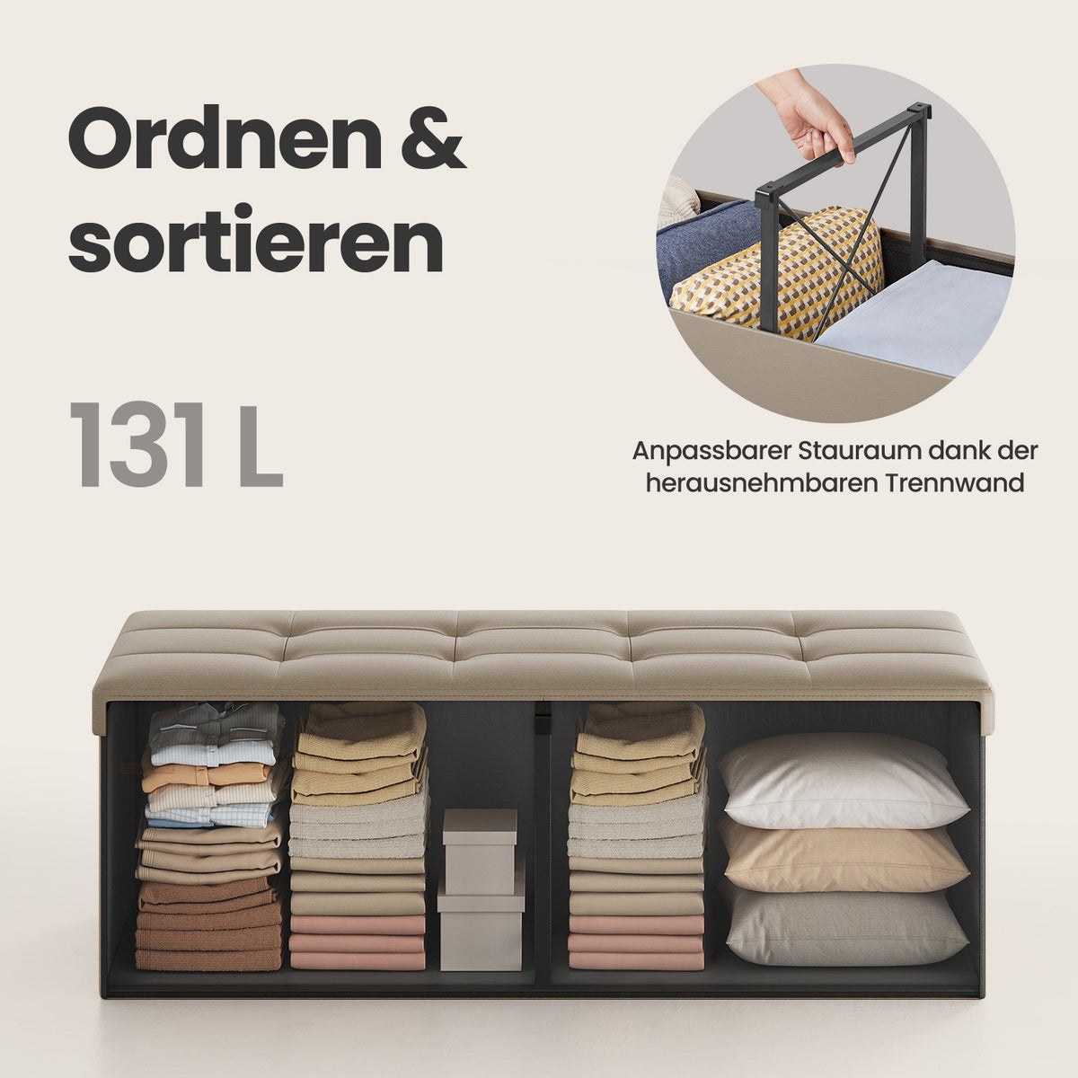 Bank met opbergruimte, opvouwbare zitkist, opbergkist 38 x 110 x 38 cm