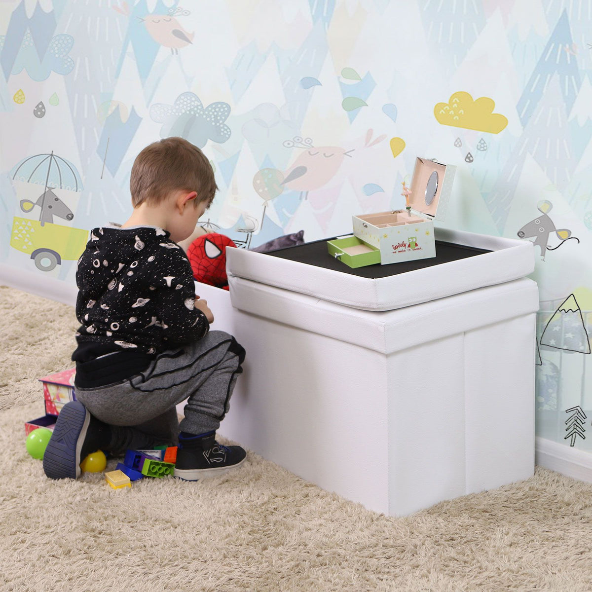 Bank met scharnierend deksel 110 cm wit