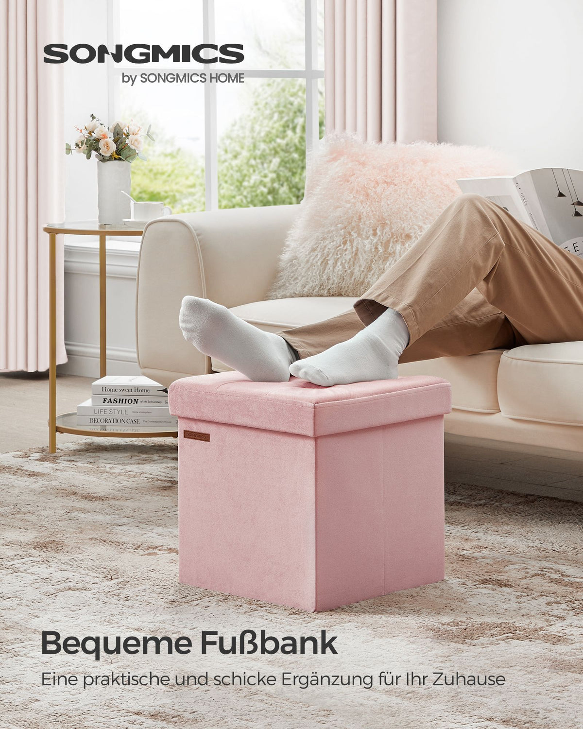 Bankje met opbergruimte voor hal pastelroze 38 x 38 x 38 cm