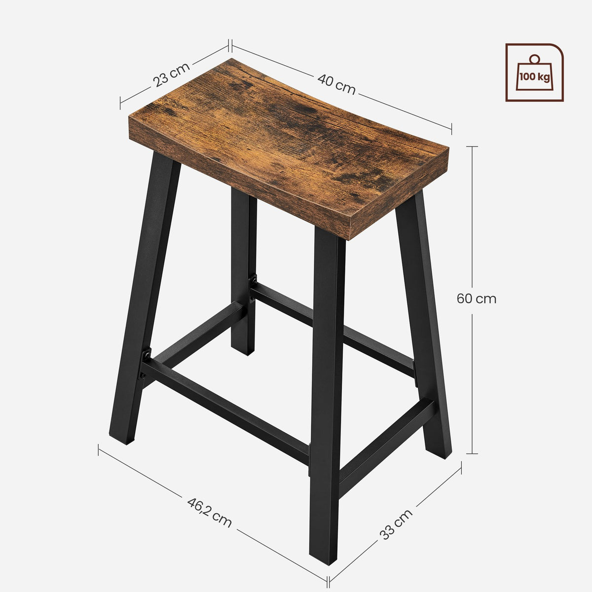 Barkruk met gebogen zitting 2 x 33 x 60 cm