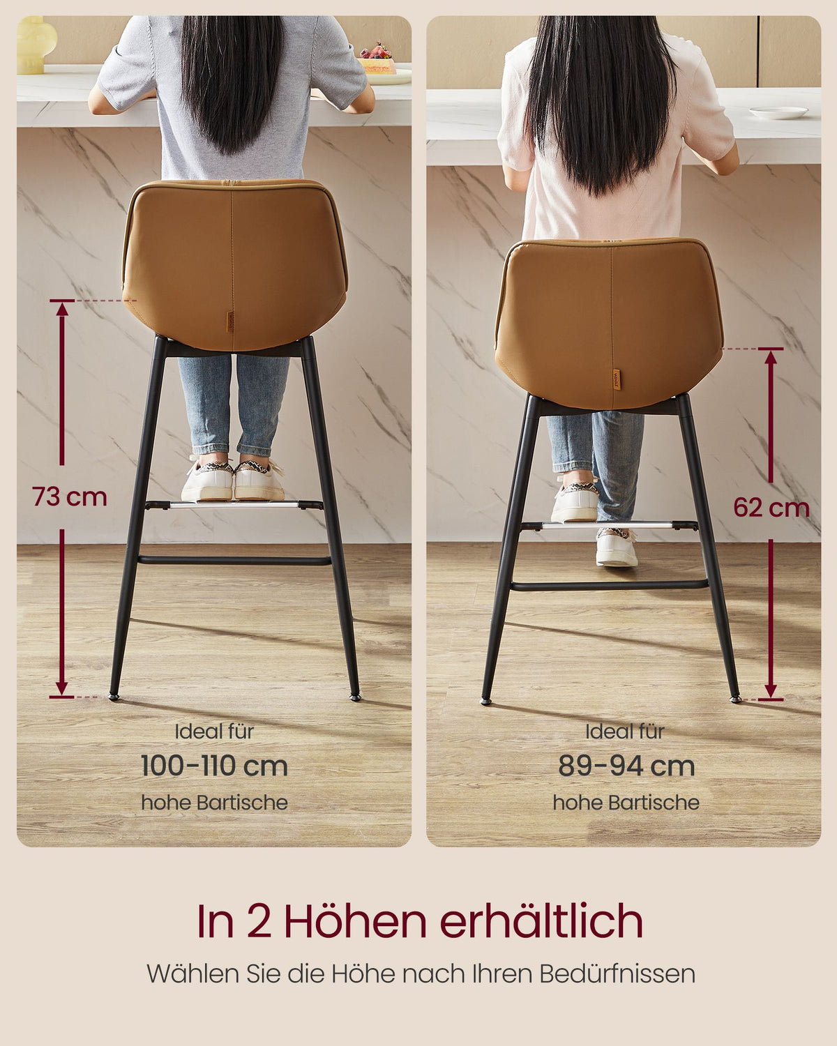 Barkruk set van 2, 73 cm hoog, karamelbruin