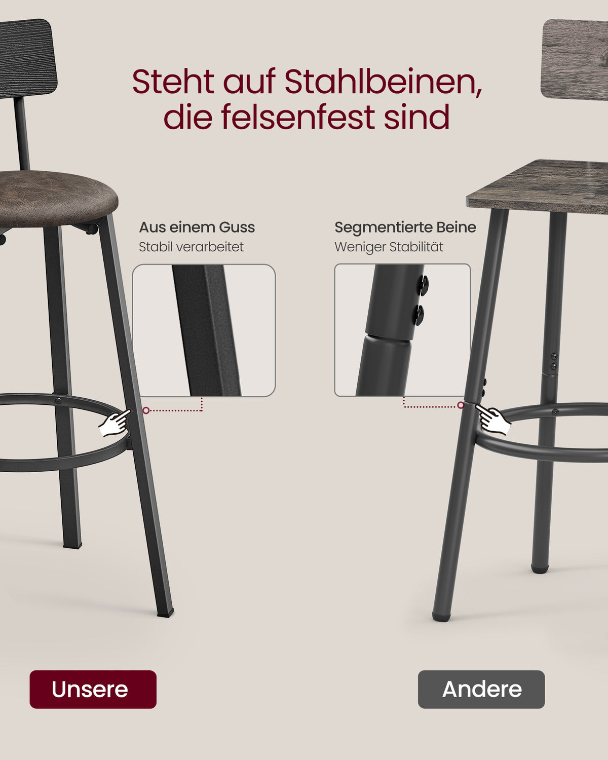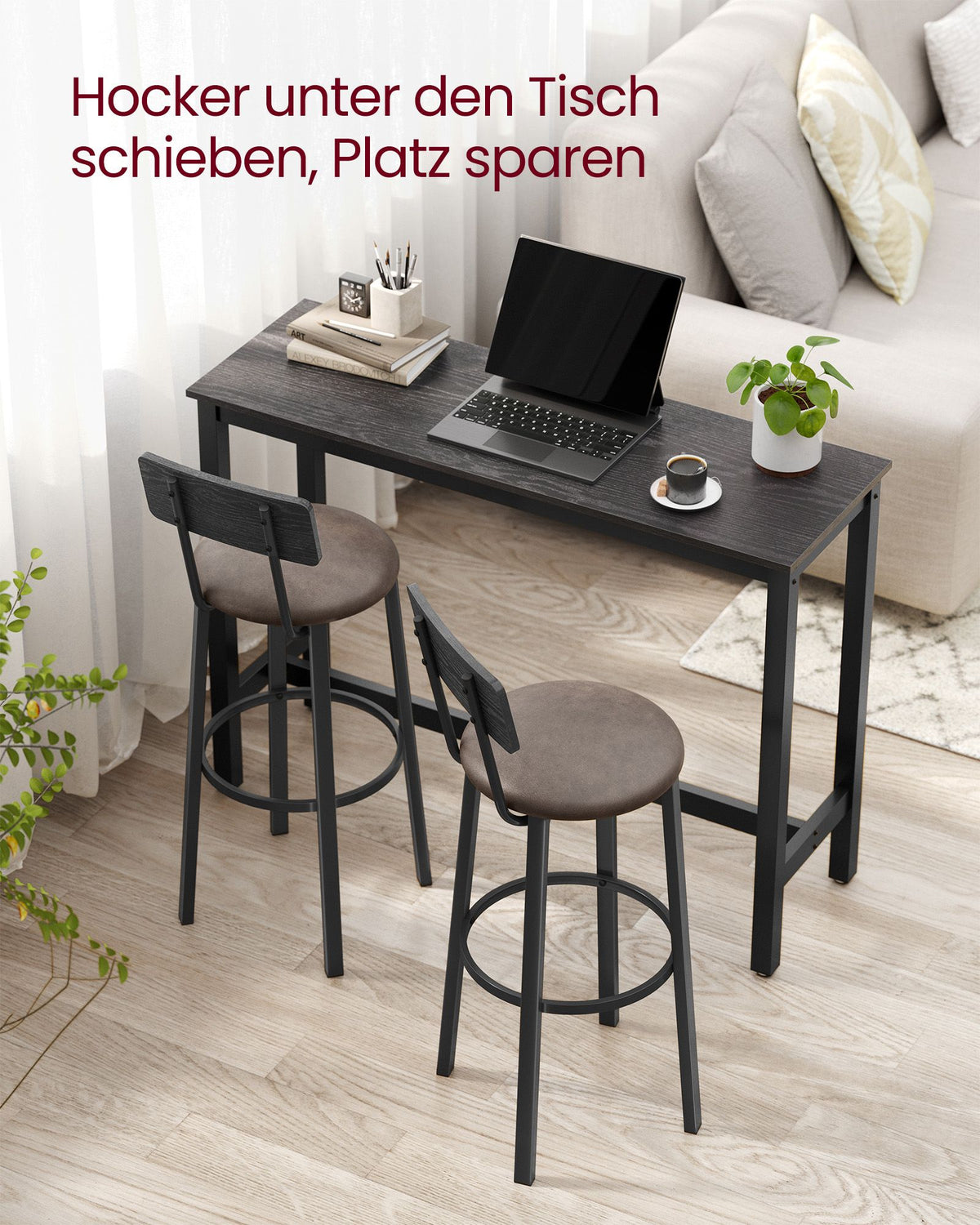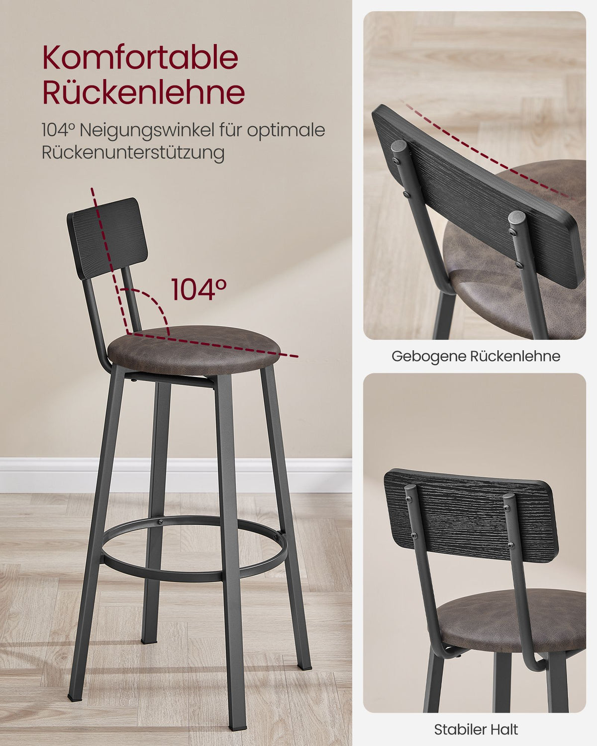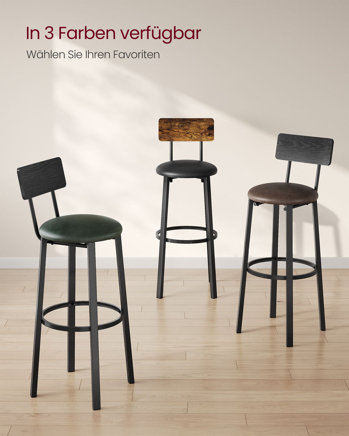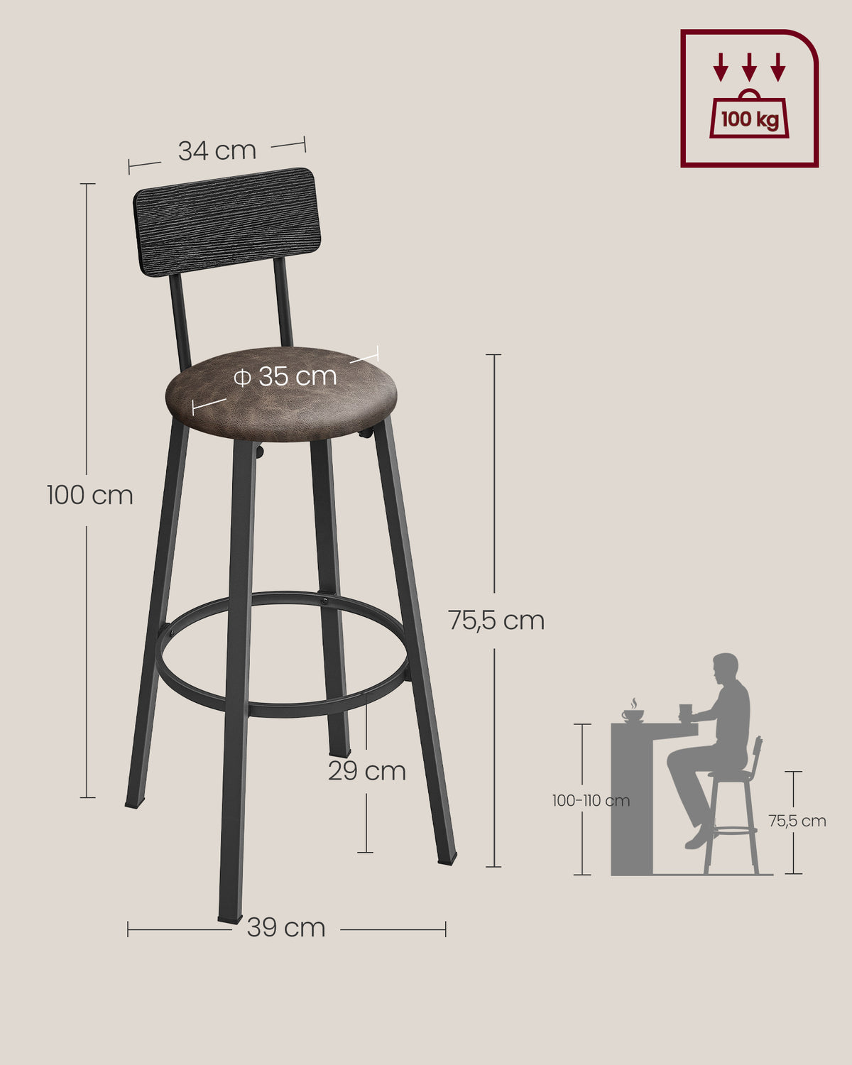 Barkruk set van 2 met voetenbankje, klassiek zwart-koffiebruin 39 x 39 x 100 cm