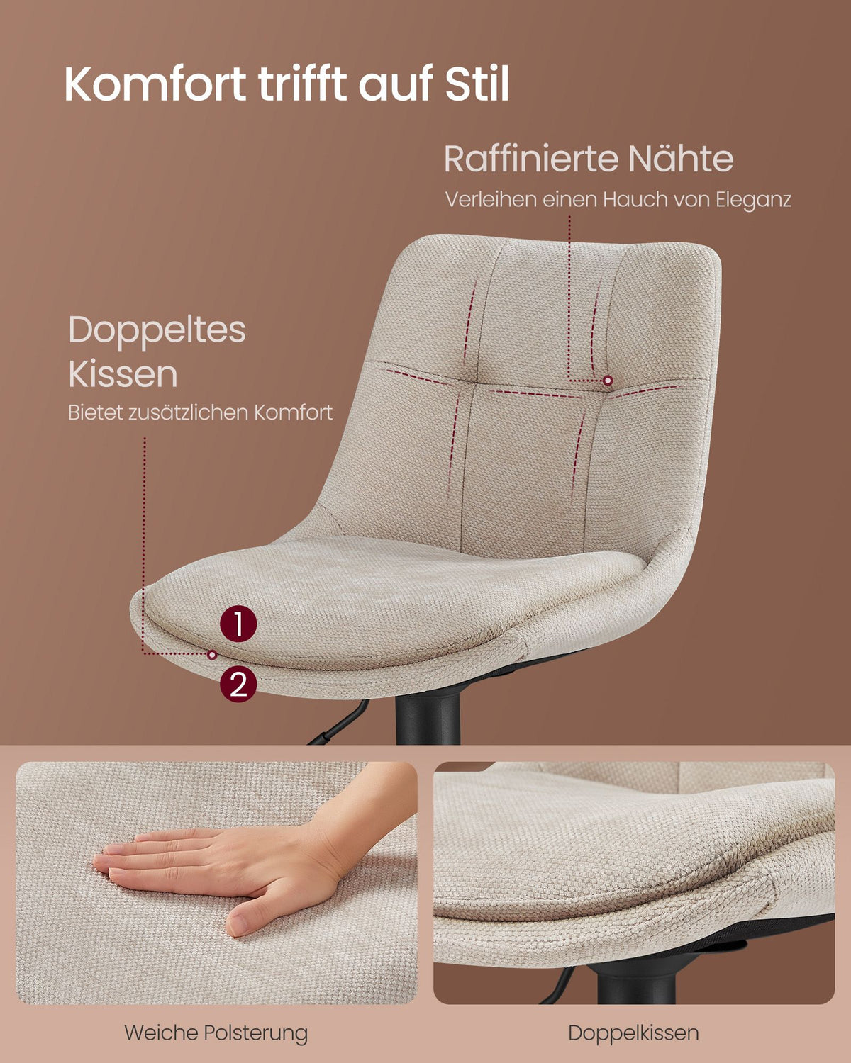 Barkrukken in hoogte verstelbaar met rugleuning en voetensteun crèmewit 84 cm