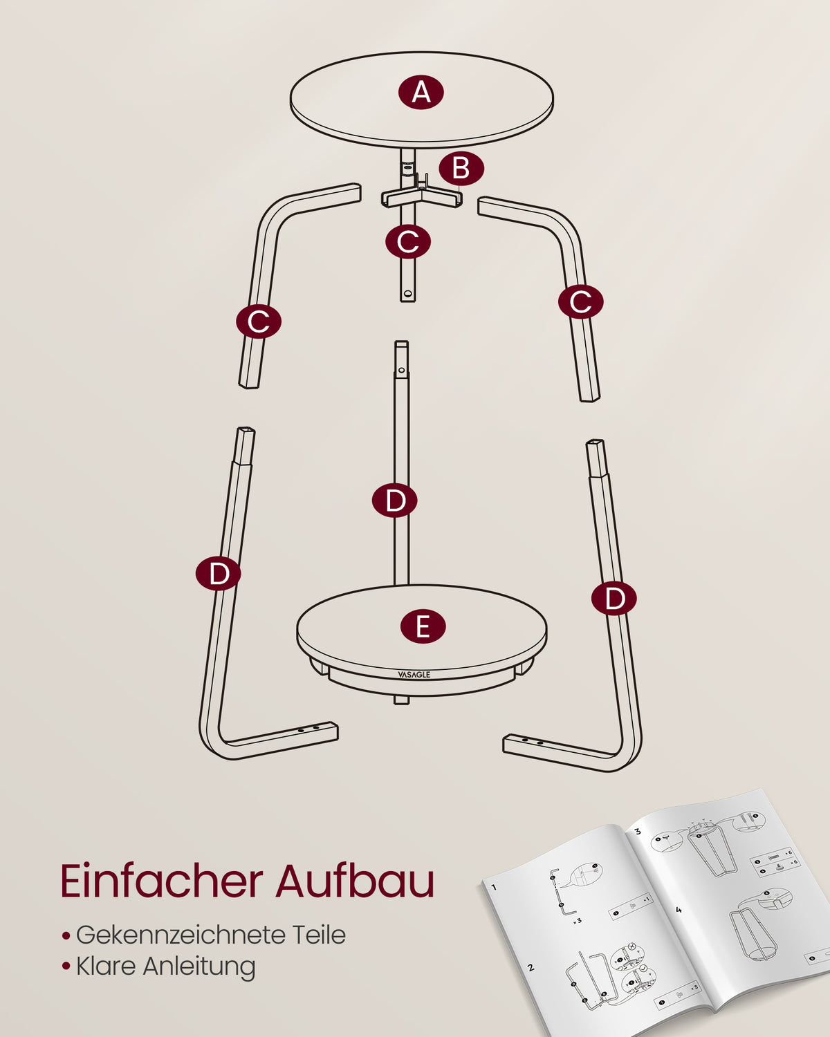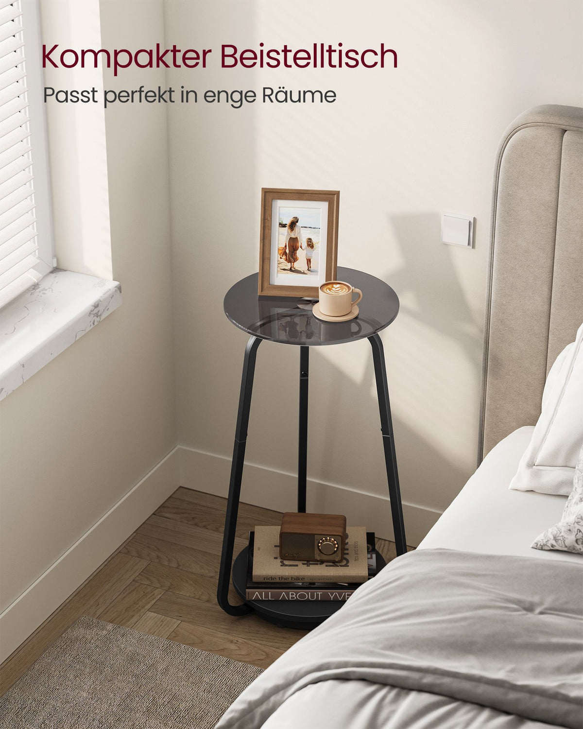 Bijzettafel met 2 niveaus en glazen blad in leigrijs 30 cm