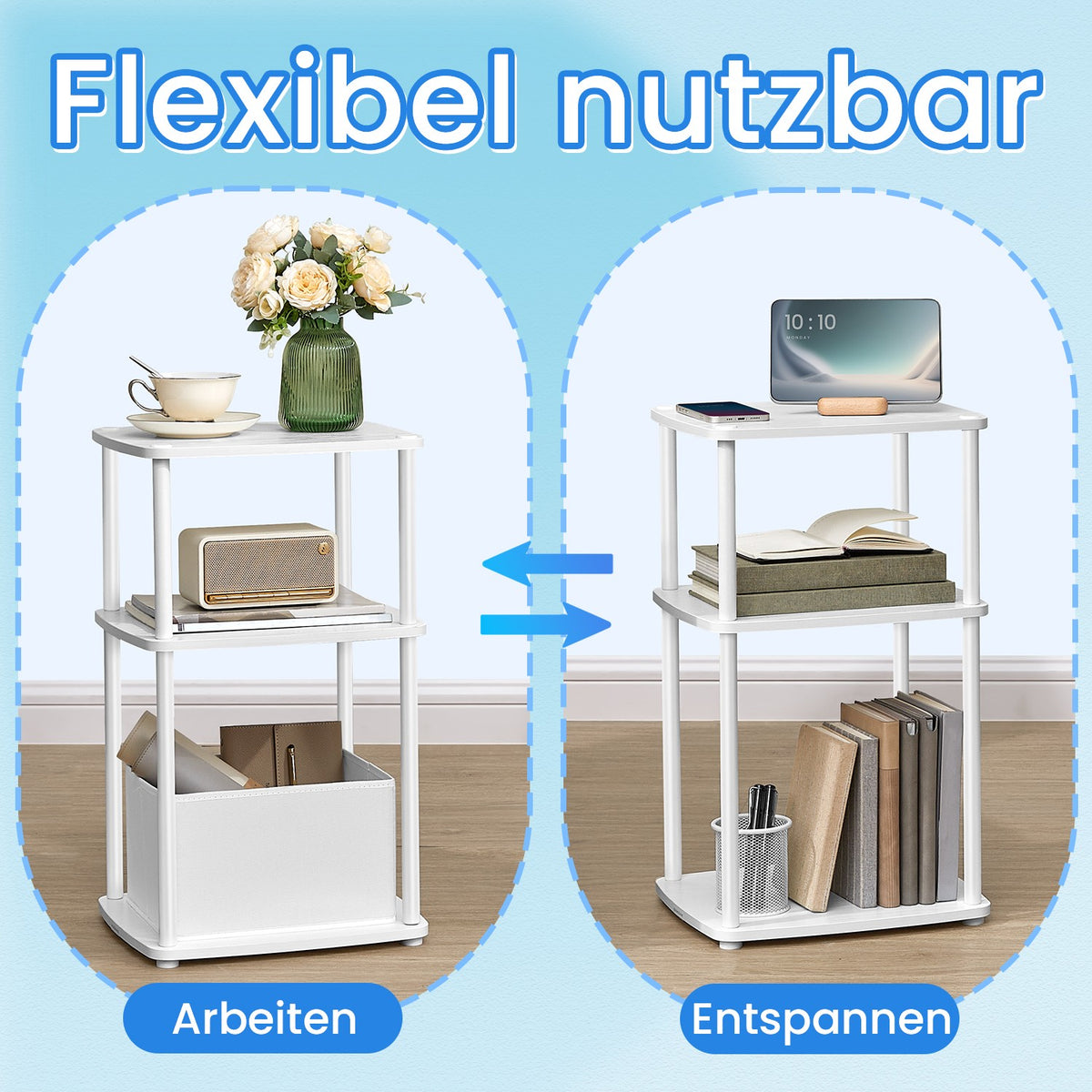 Bijzettafel met 3 planken 30 x 34 x 58 cm sneeuwwit - LETB35286W01