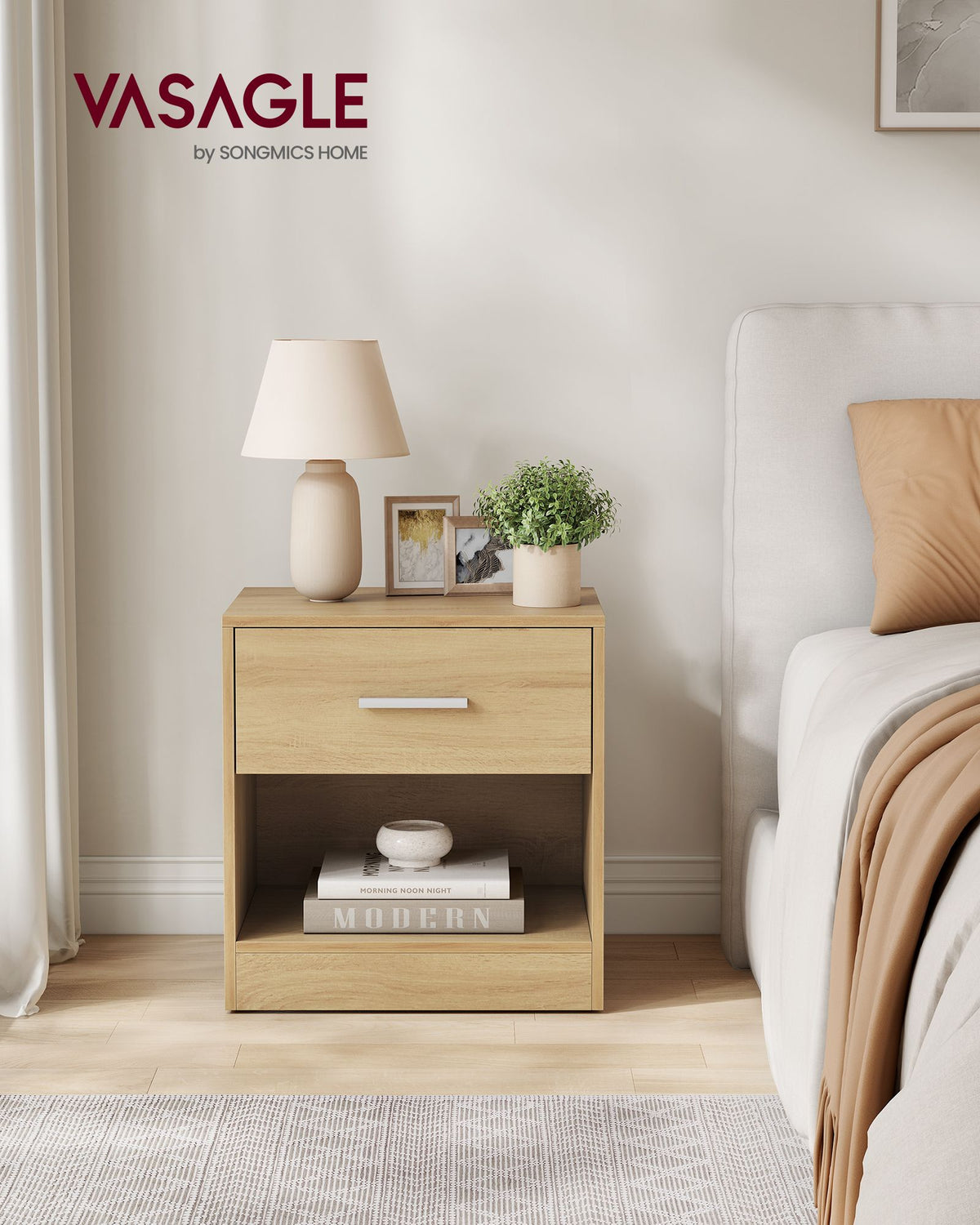 Bijzettafel met lade open vak strogeel 28 x 39 x 41 cm