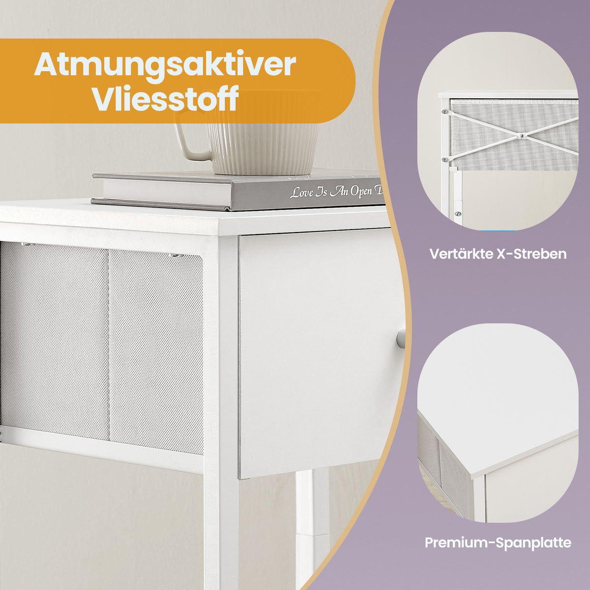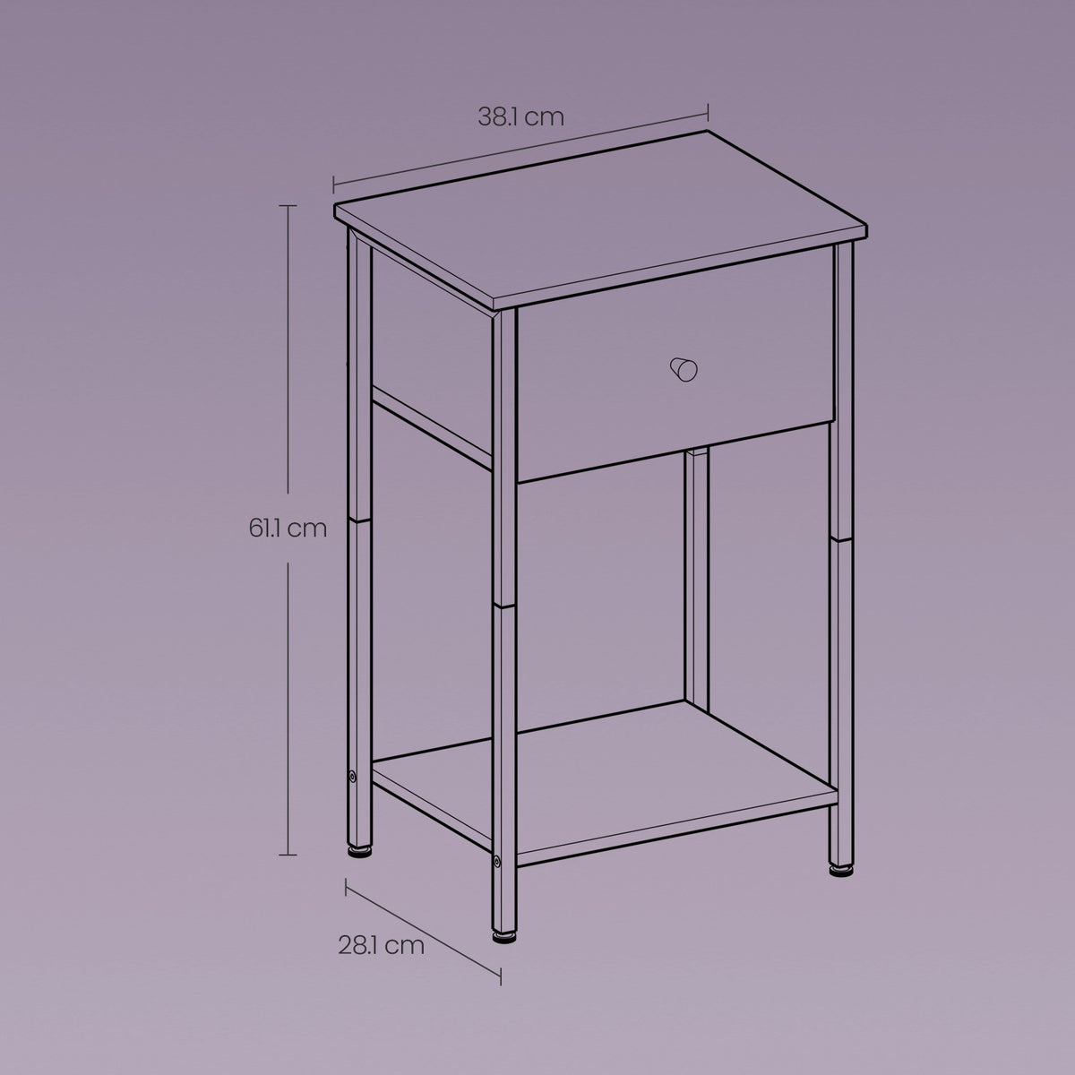 Bijzettafel, nachtkastje, met plank en stoffen lade 61 cm - LGSB35021W14