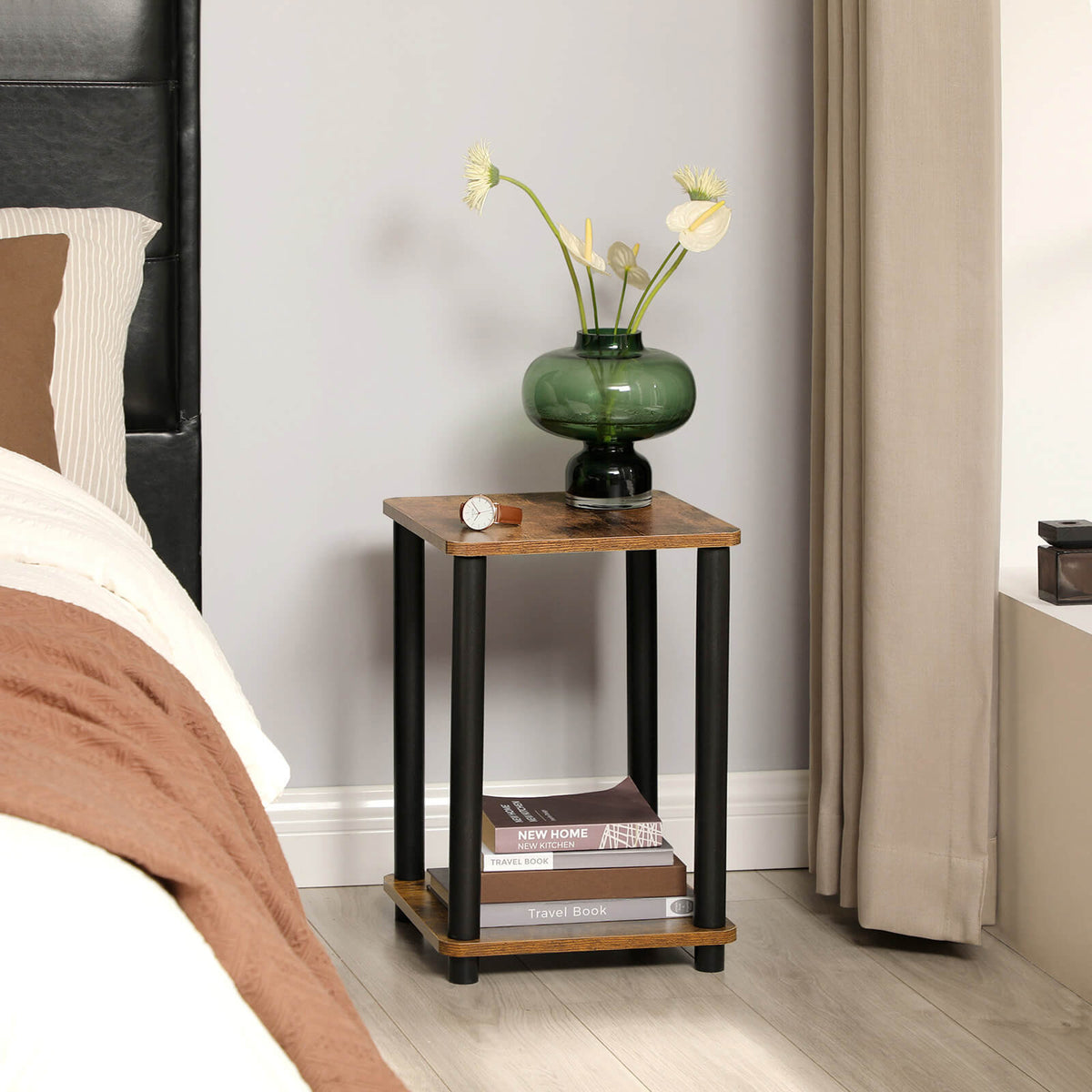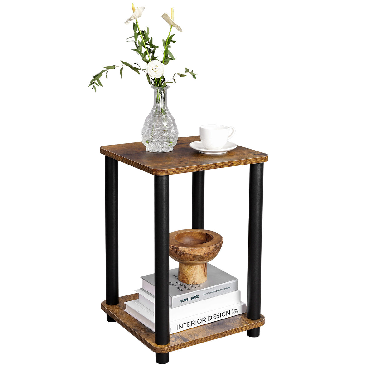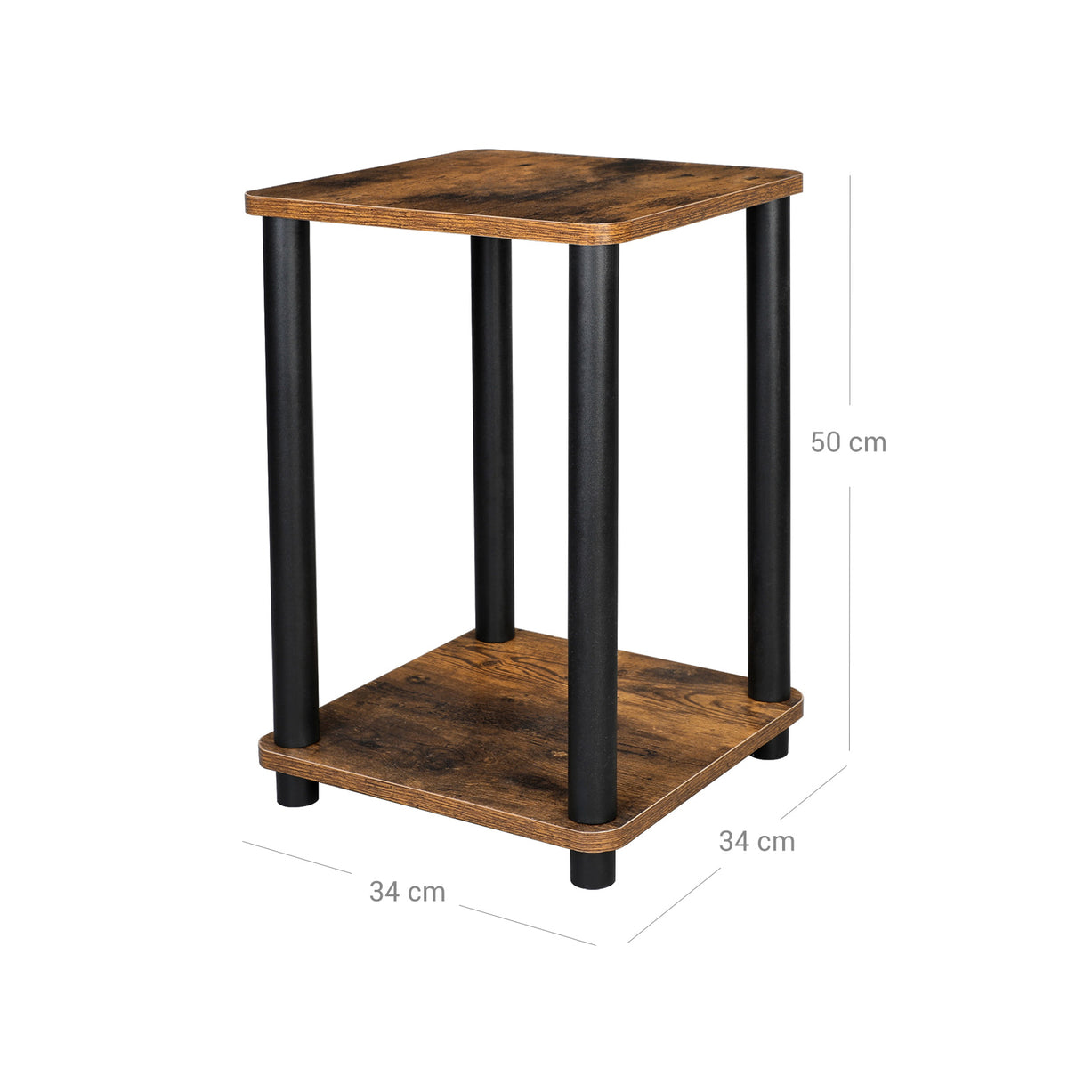 Bijzettafel vintage bruin-zwart 34 x 34 x 50 cm