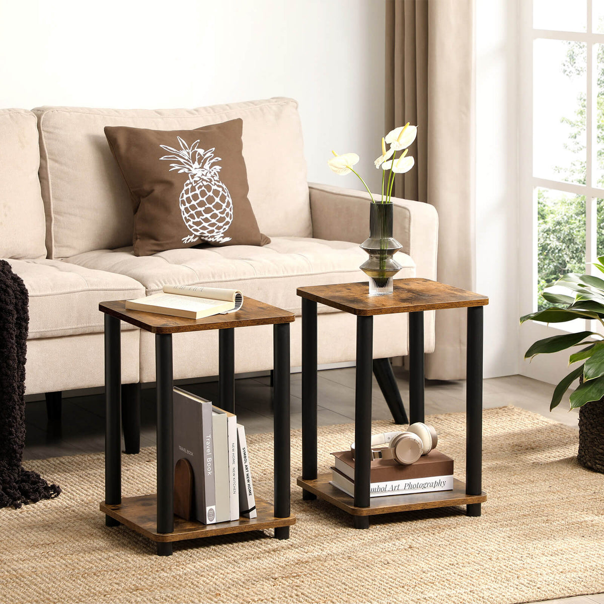 Bijzettafels vintage bruin-zwart 34 x 34 x 50 cm