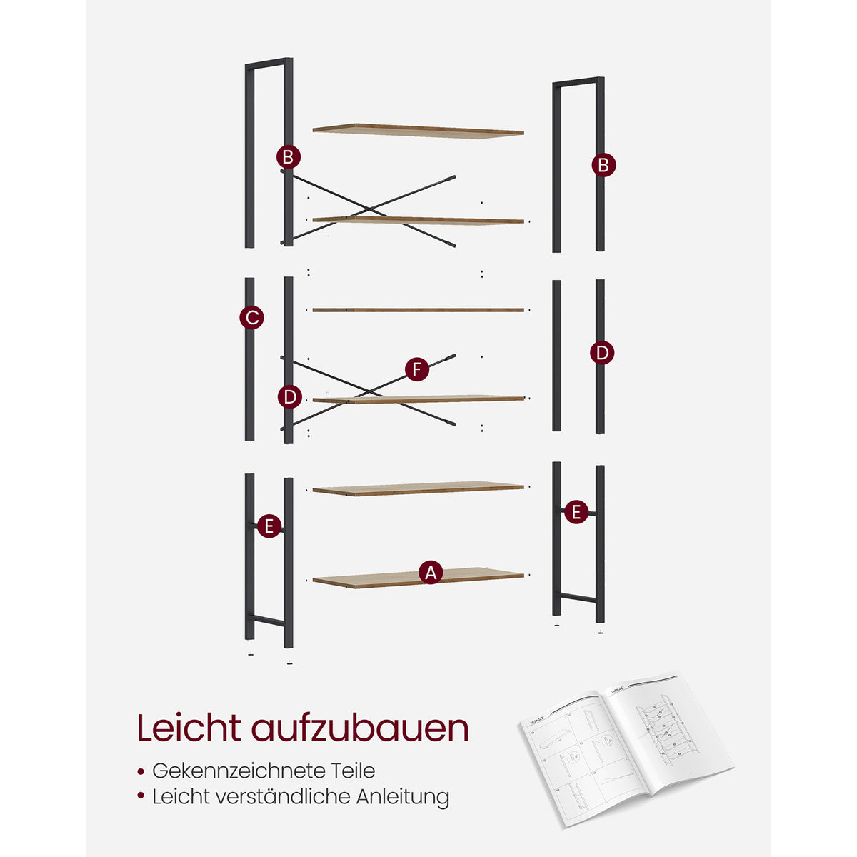 Boekenkast 6 niveaus 30 x 80 x 186 cm donker notenzwart - LLS082B48