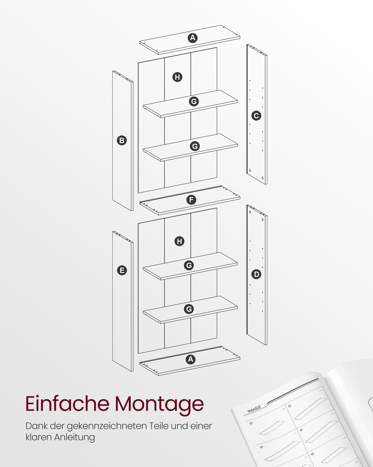 Boekenkast, met 6 niveaus 24 x 60 x 178,5 cm vintage bruin