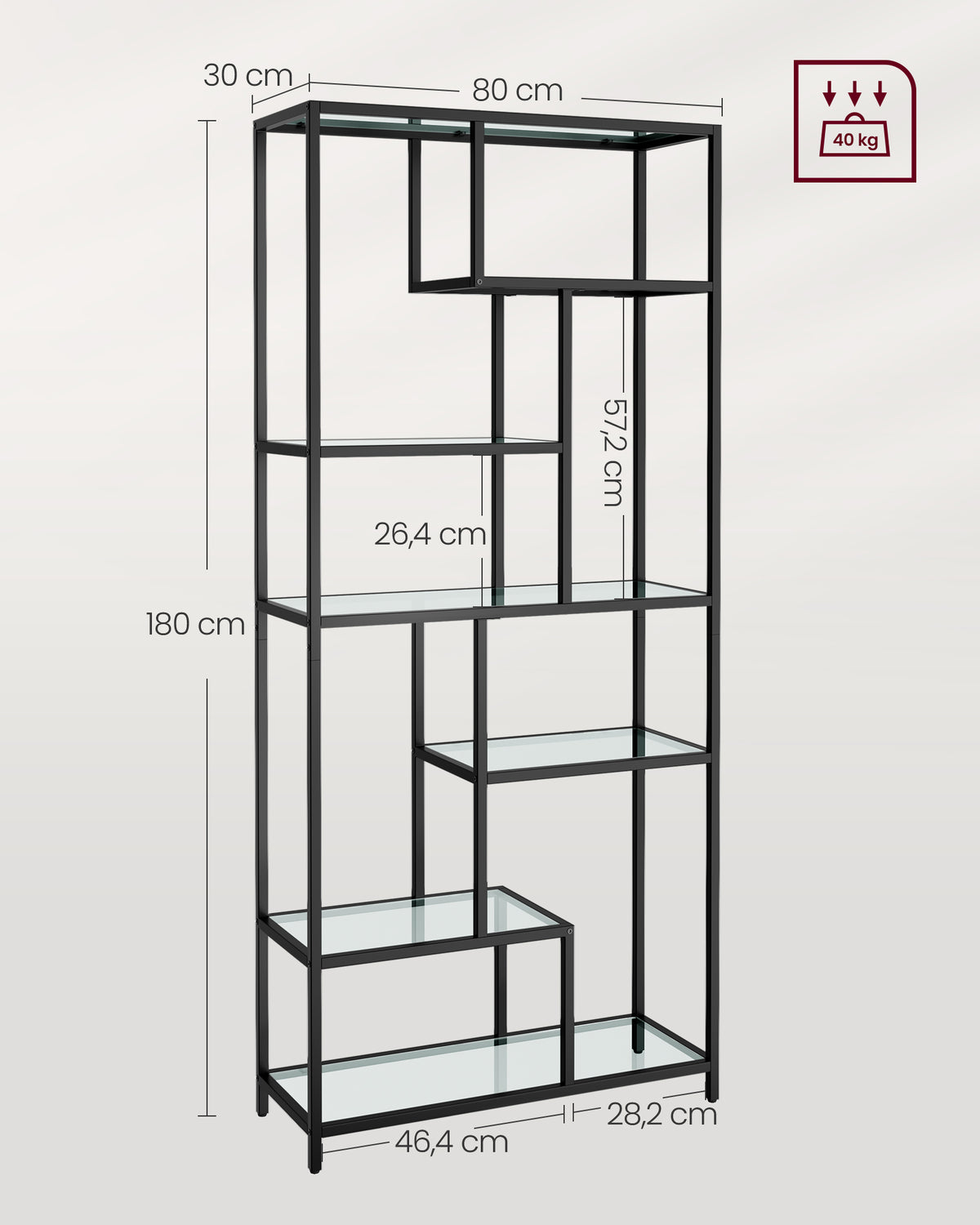 Boekenkast met 6 planken inktzwart - transparant 30 x 80 x 180 cm