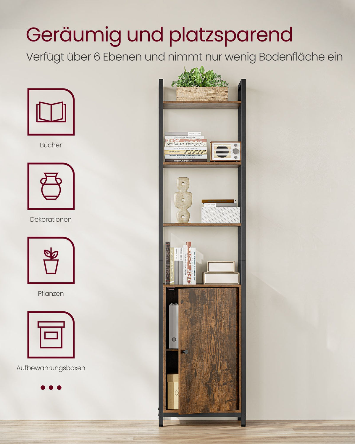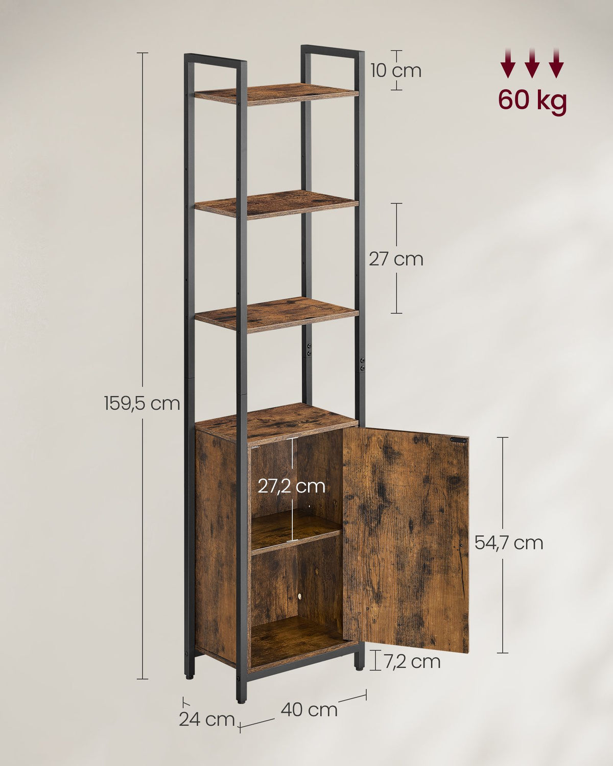 Boekenplank 24 x 40 x 159,5 cm vintage bruin-inkt zwart