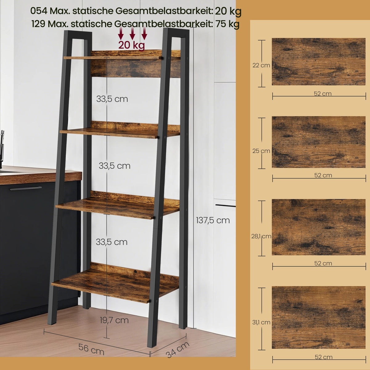 Boekenplank, ladderplank 4 niveaus, smalle plank 56 x 34 x 137,5 cm