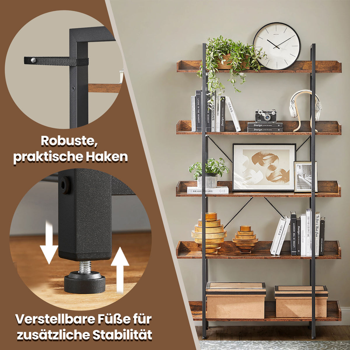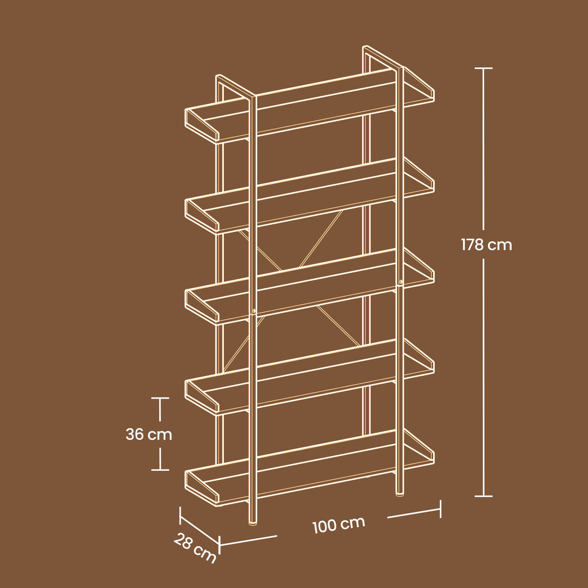 Boekenplank met 5 niveaus 100 x 28 x 178 cm - LLSB35110B01