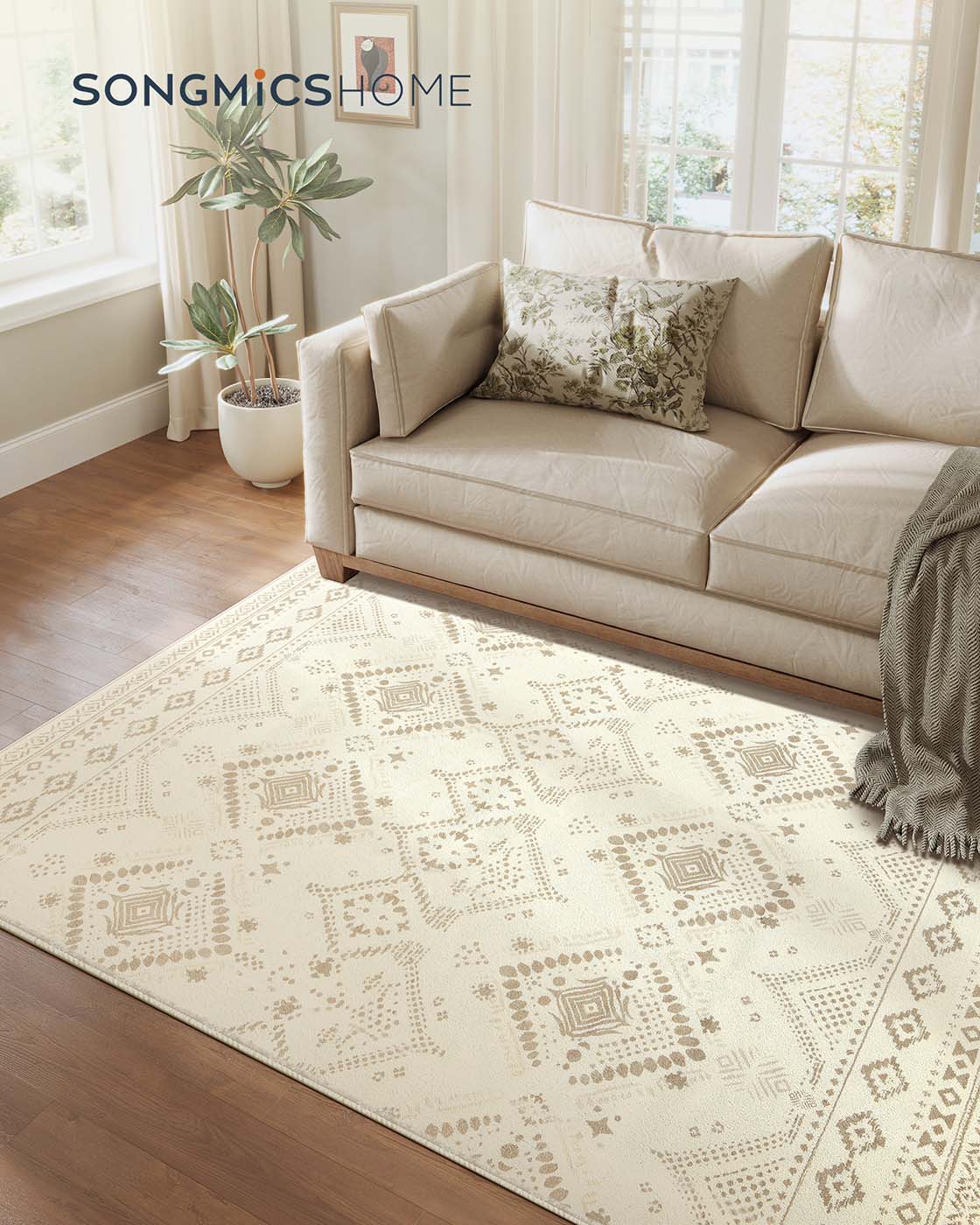 Boho vloerkleed 160 x 230 cm fluffy zandbeige