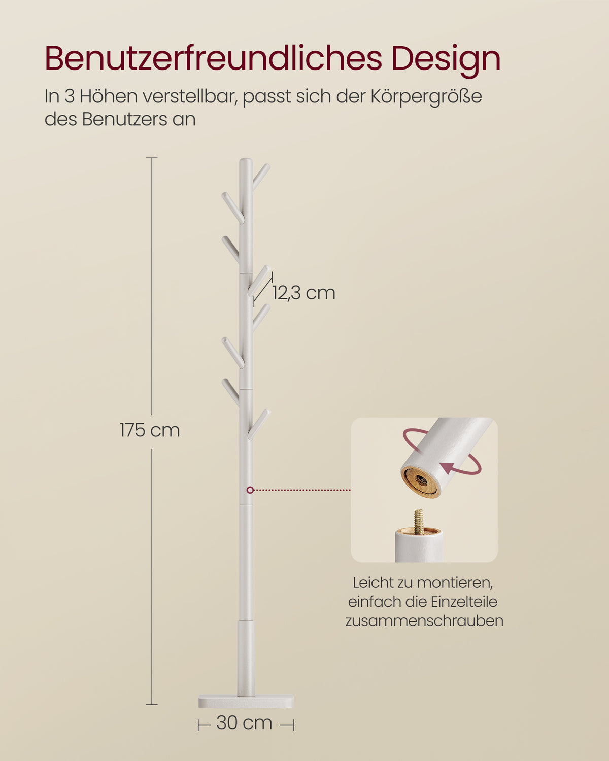 Boomvormige kapstok van rubberhout 30 x 30 x 175 cm