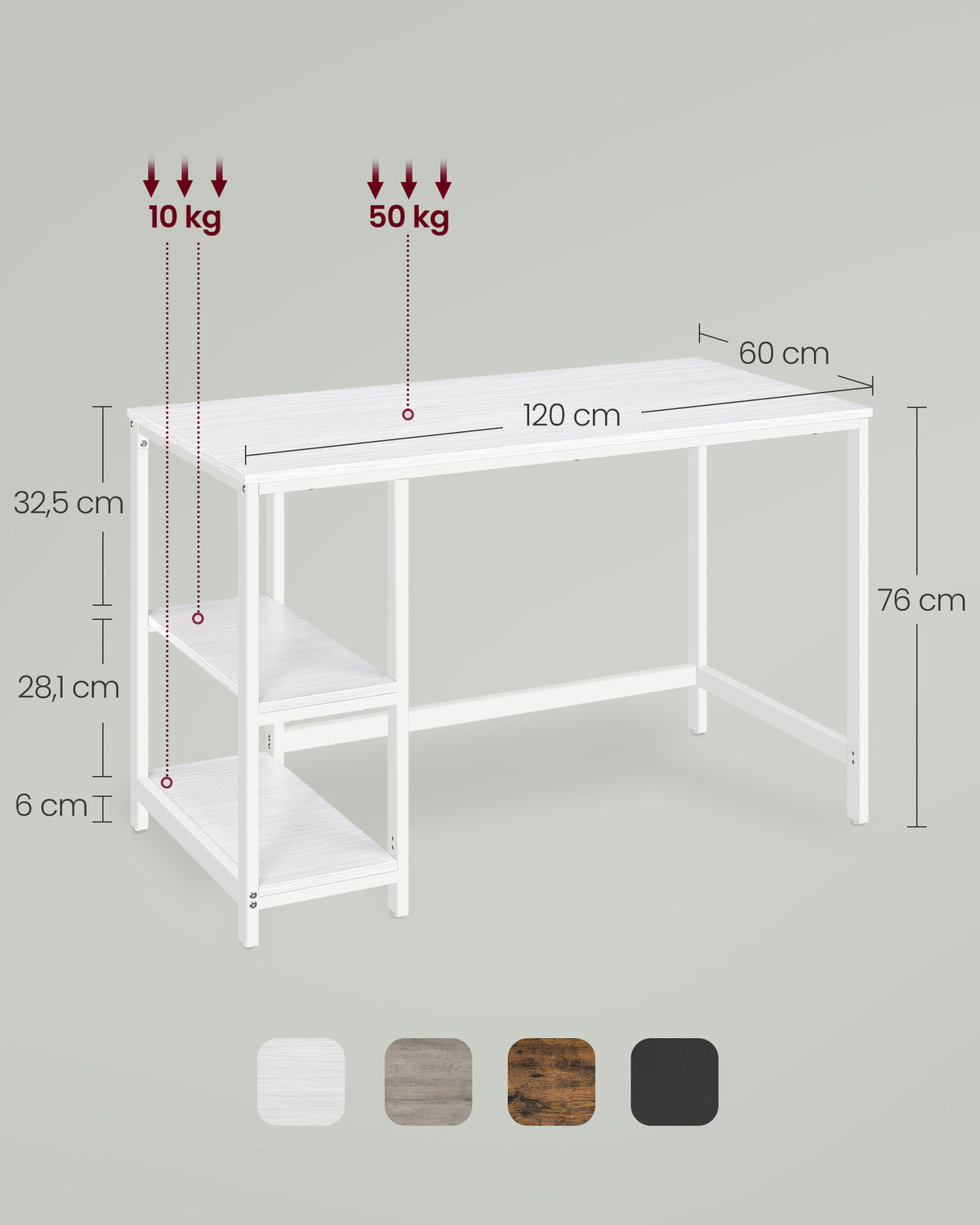 Bureau met 2 planken modern esdoorn wit 60 x 120 x 76 cm