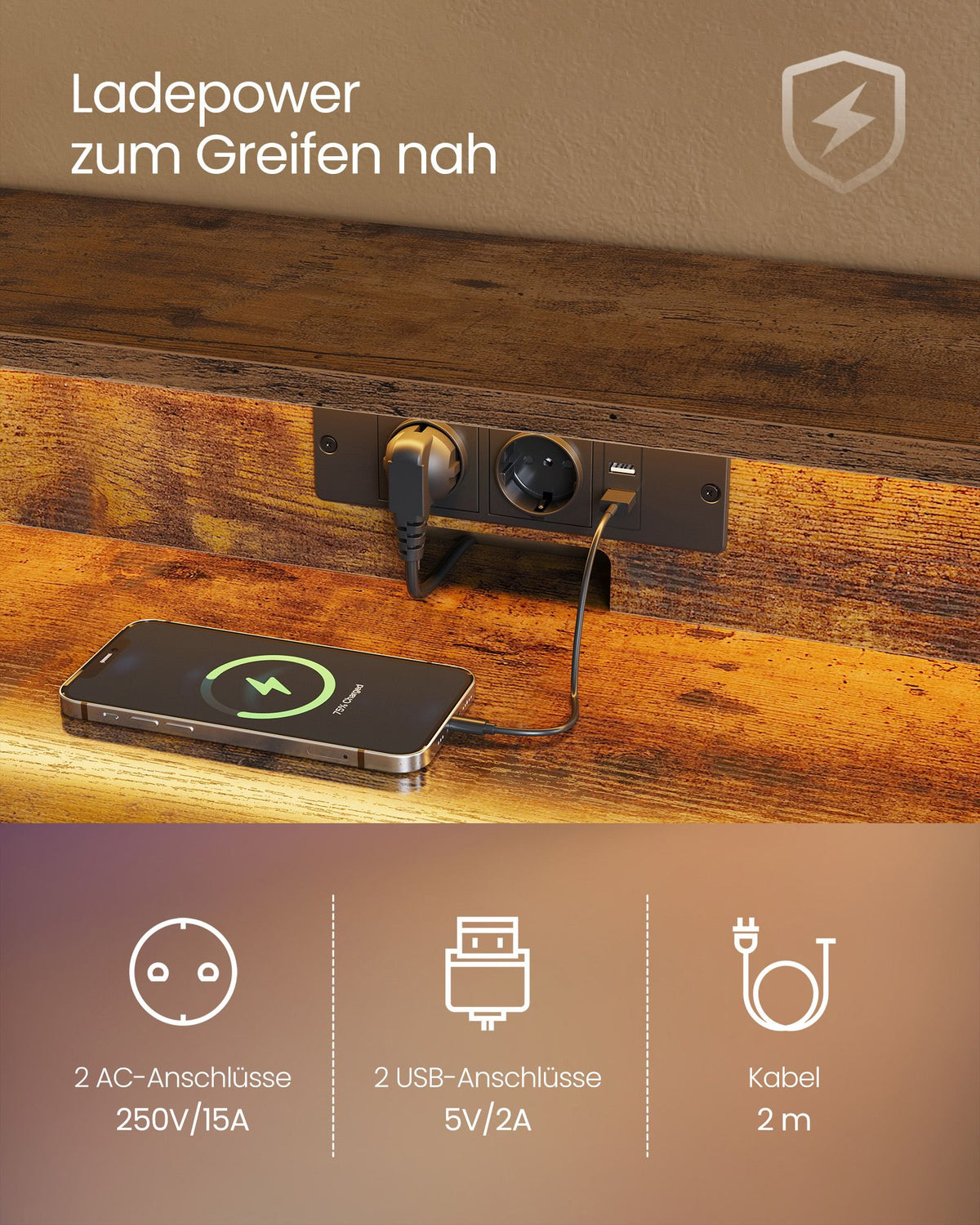 Bureau met stekkerdoos 60 x 100 x 76 cm vintage bruin