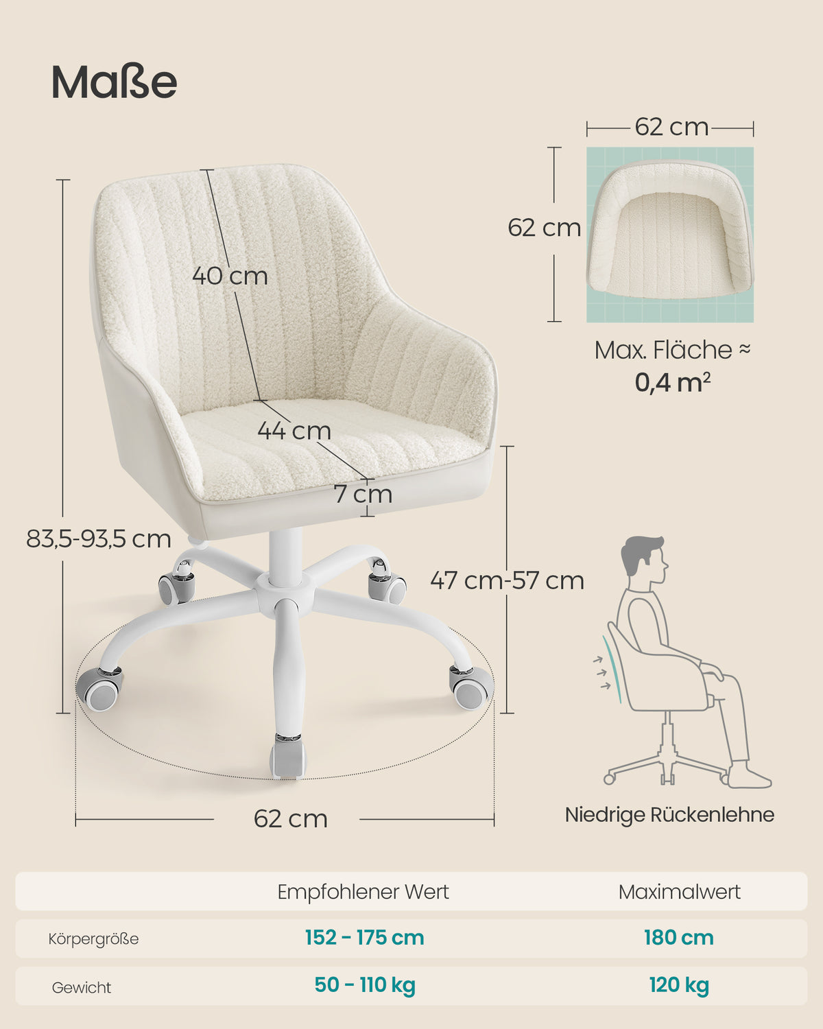 Bureaustoel gestoffeerd cappuccino beige-wolkwit 57 cm