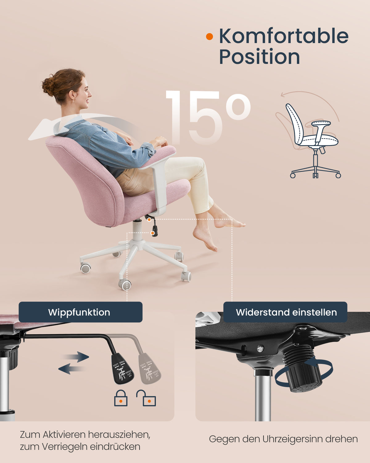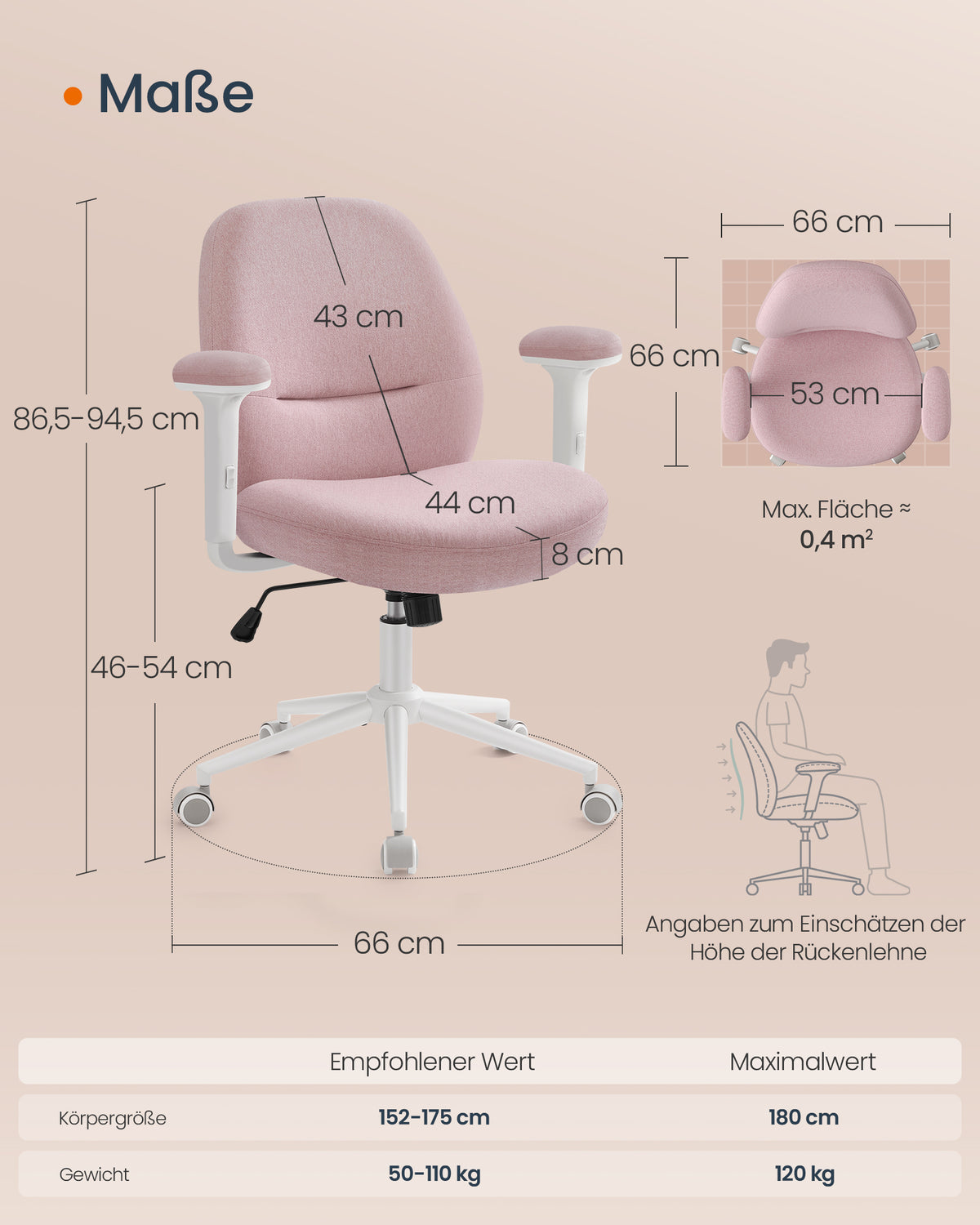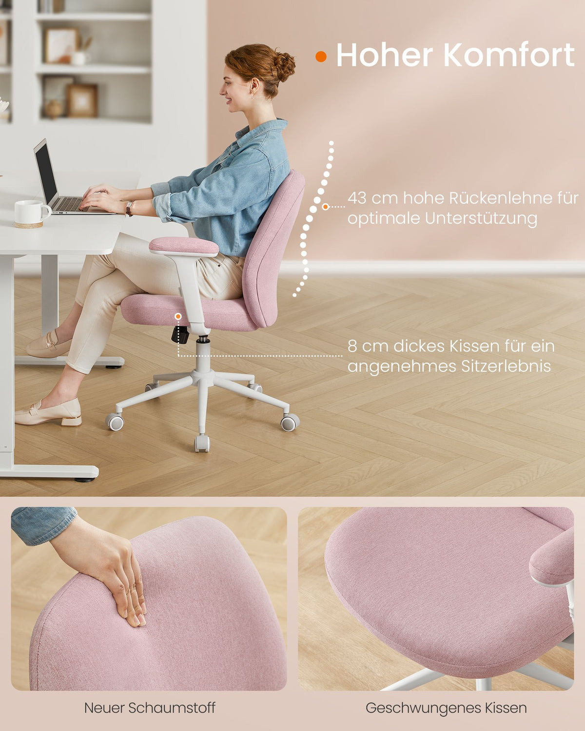 Bureaustoel met verstelbare armleuningen pastelroze 54 cm