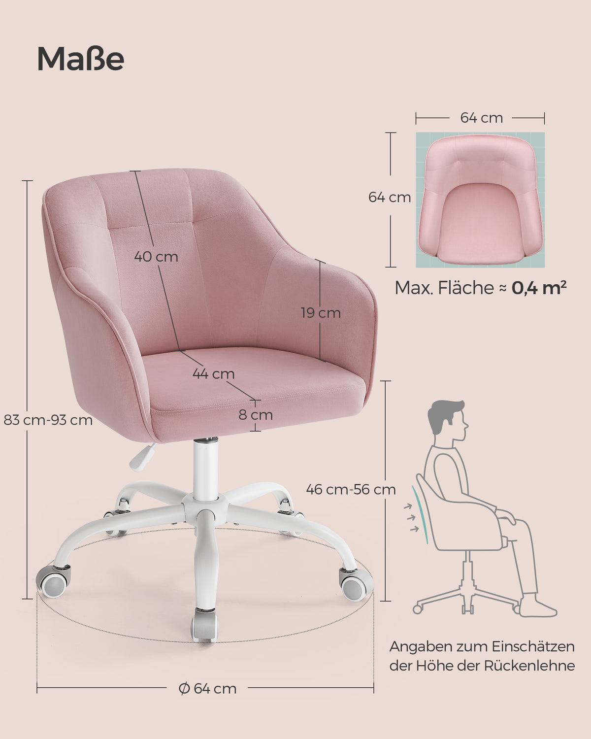 Bureaustoel tot 110 kg draagvermogen pastelroze 56 cm