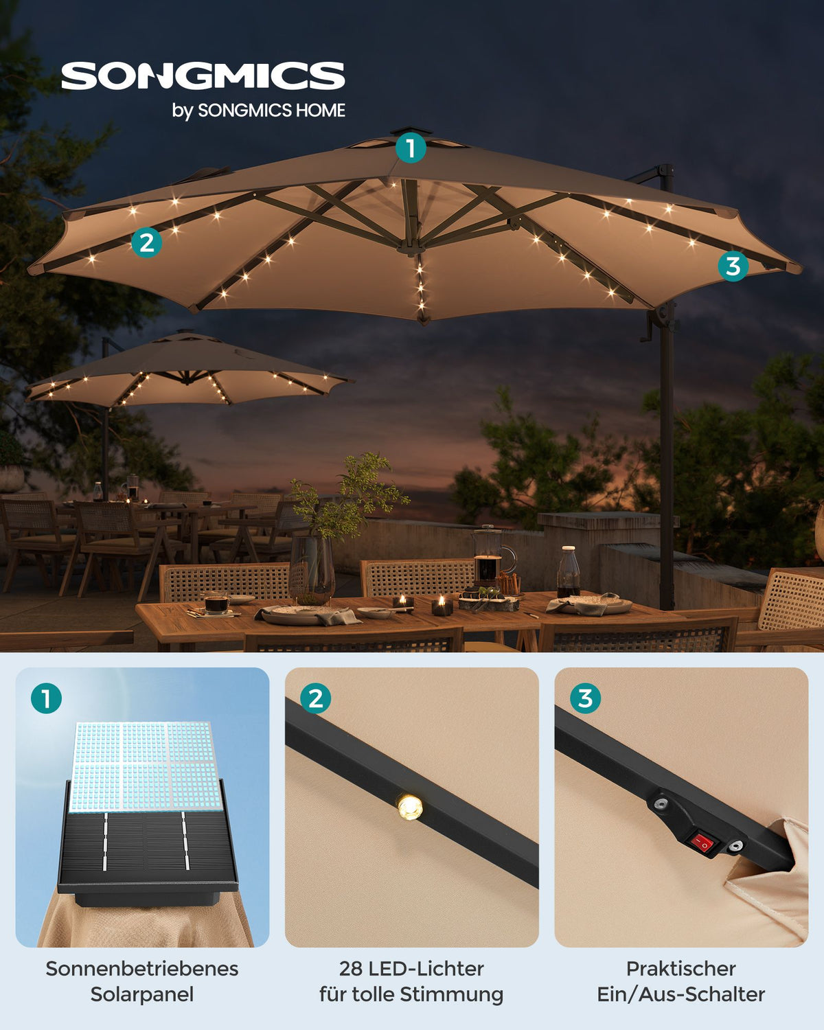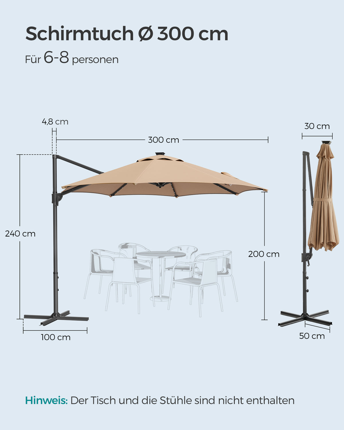 Cantileverparaplu draaibaar met zwengel camelbruin 300 cm