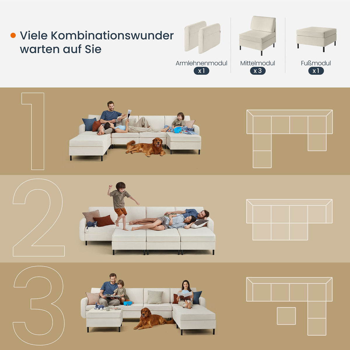 COMBIE Collectie - 7-delige modulaire bank 6 cm - B34LCS065W01