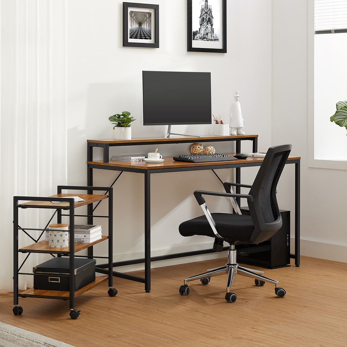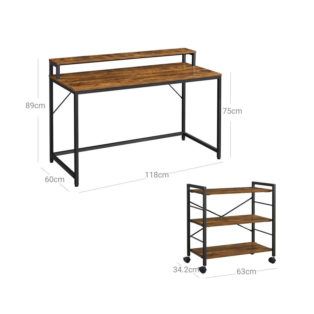 Computertafel vintage bruin-zwart 118 x 60 x 89 cm