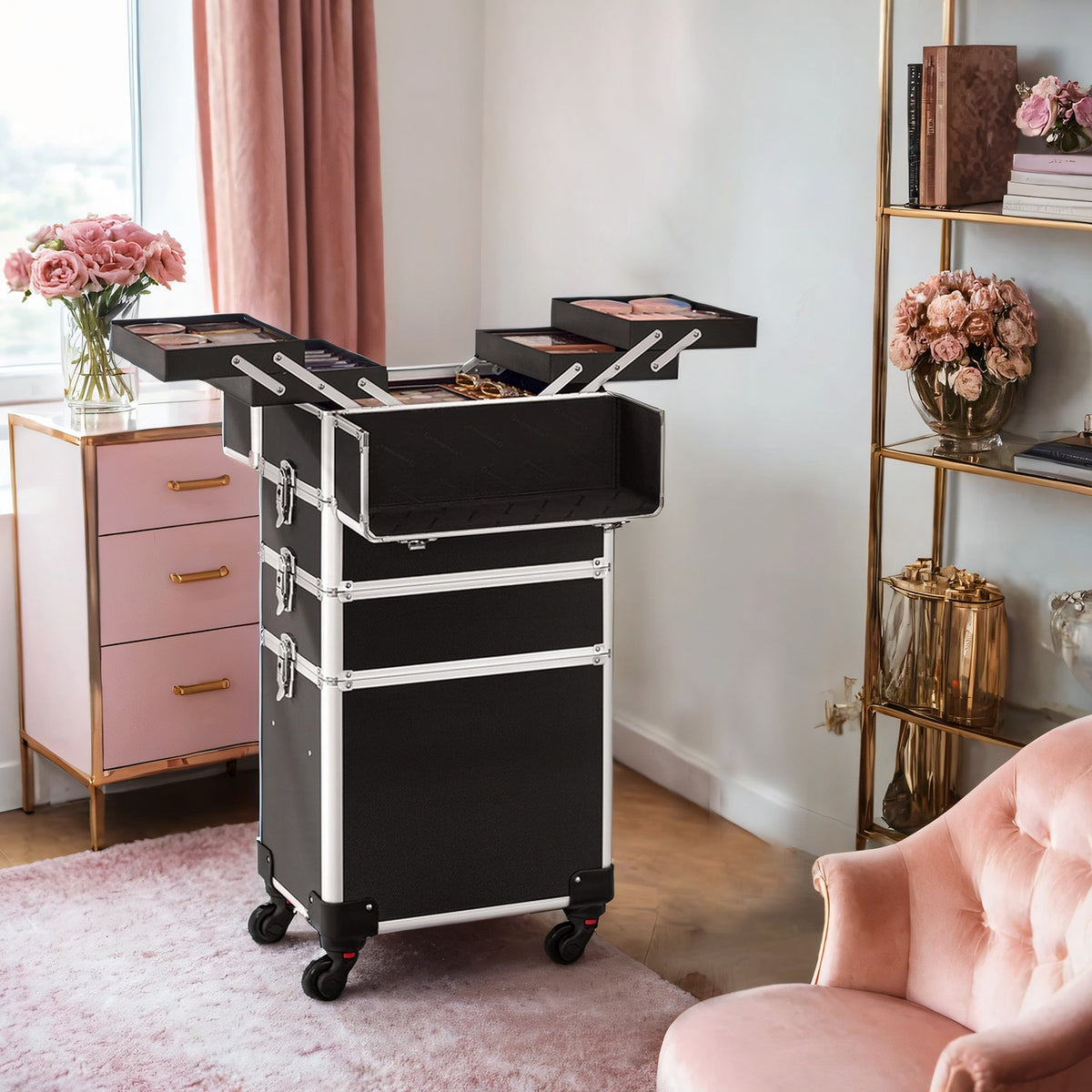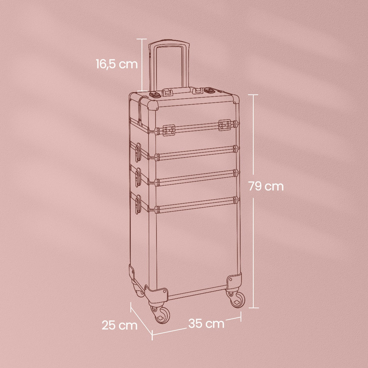 Cosmetische koffer, trolley, 4-in-1 make-upkoffer 35 x 25 x 82,5 cm