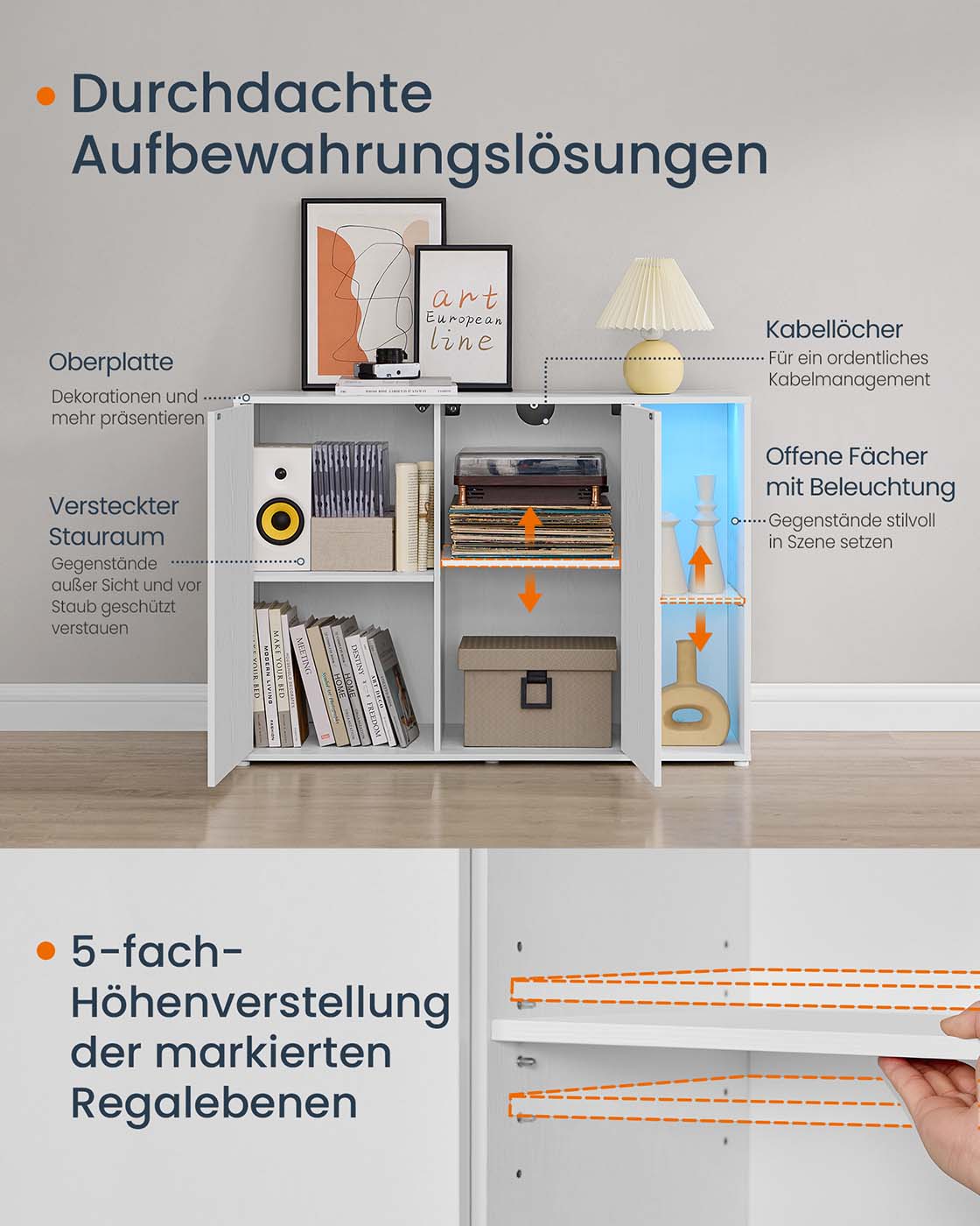 Dressoir met verlichtingstoolless-technologie sneeuwwit 39 x 100 x 71 cm