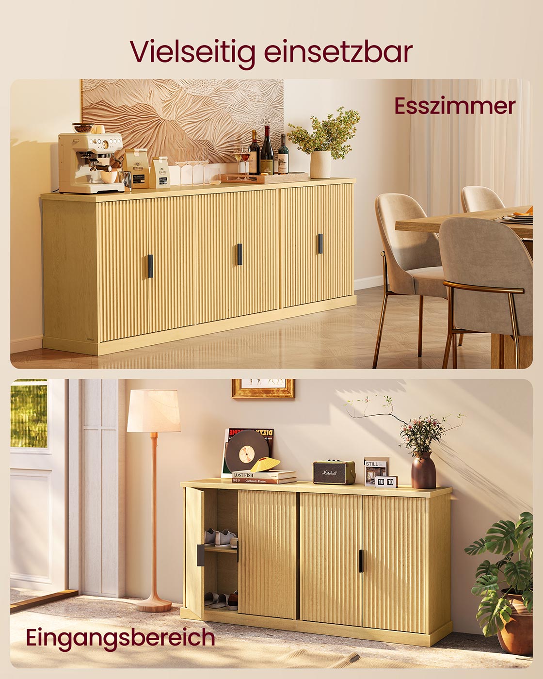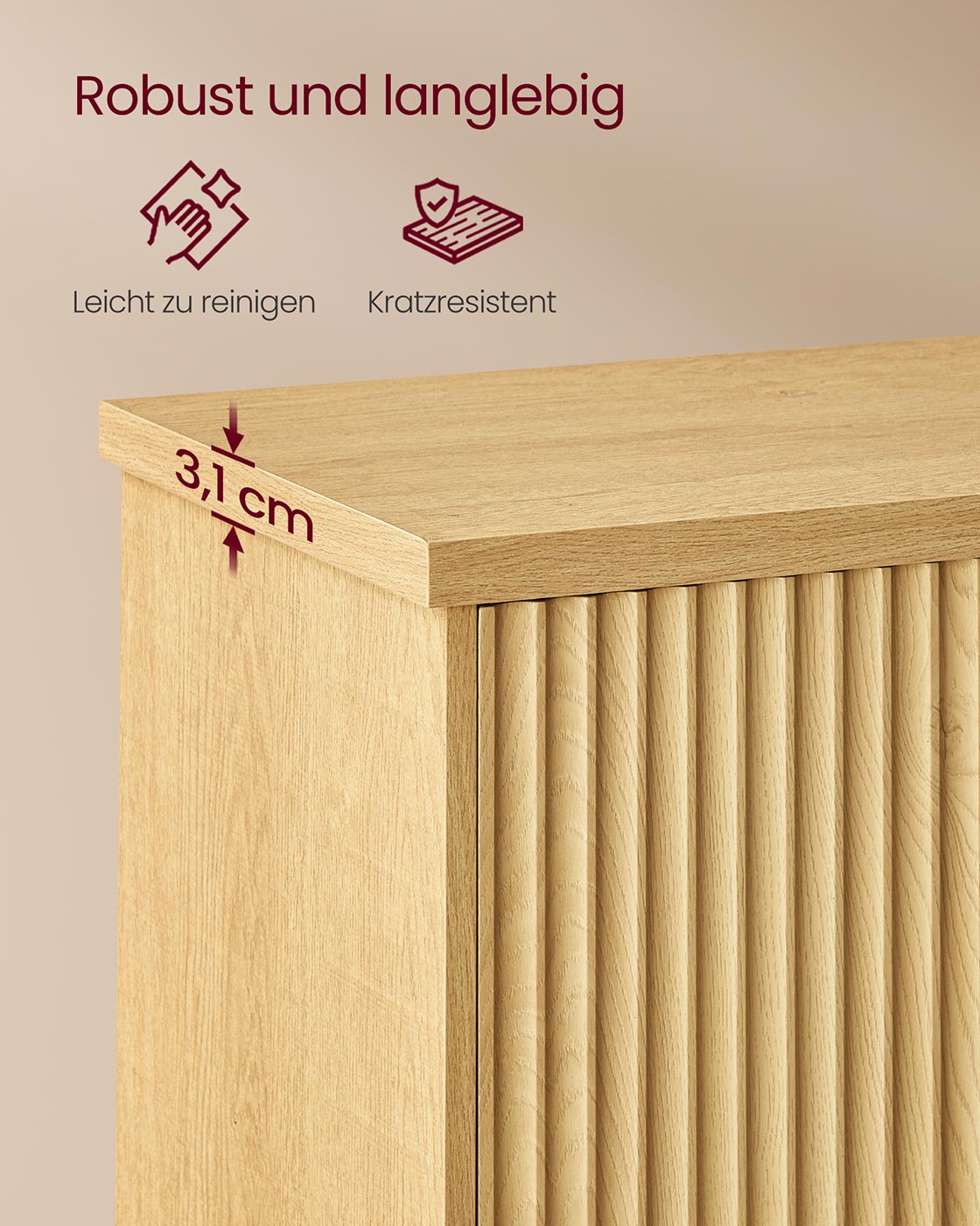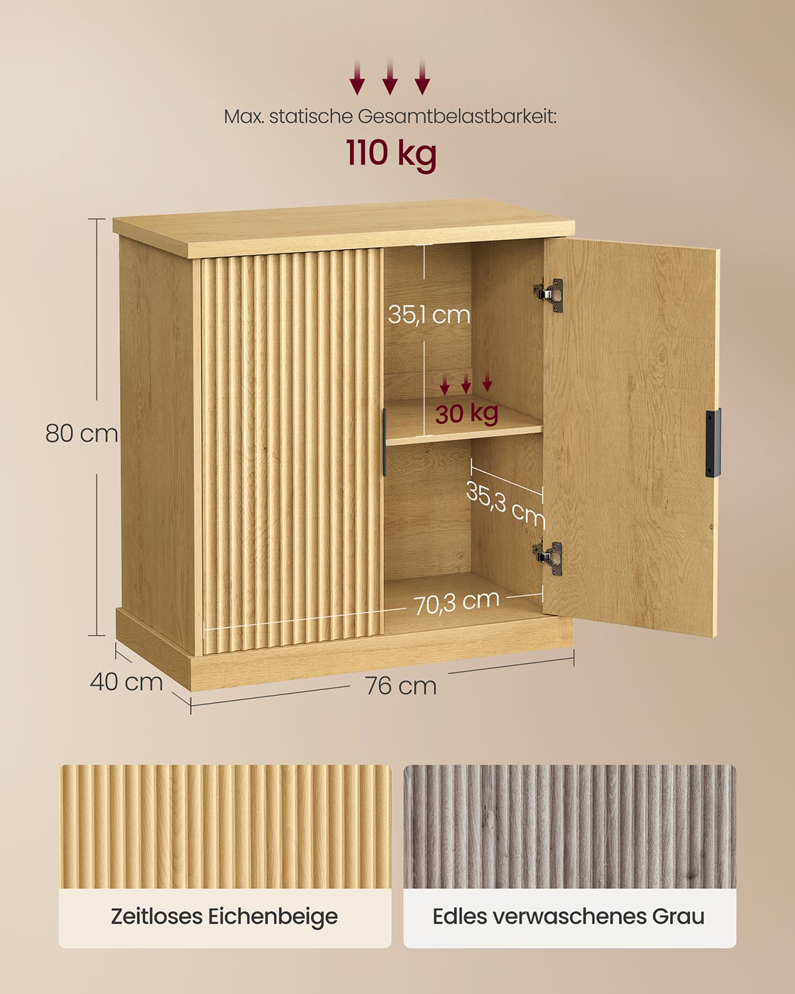 Dressoir met verstelbare plank en gegroefde deuren 40 x 76 x 80 cm