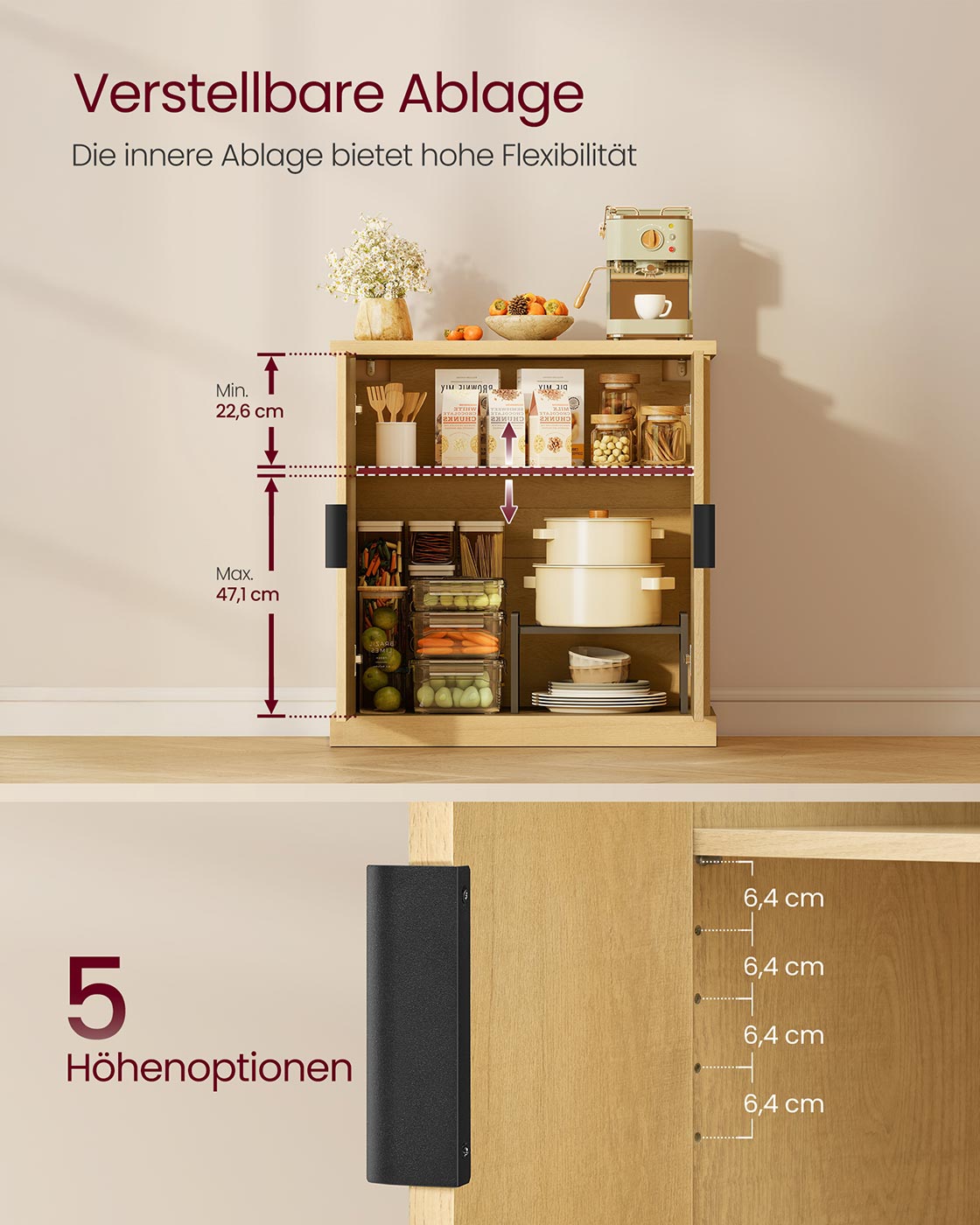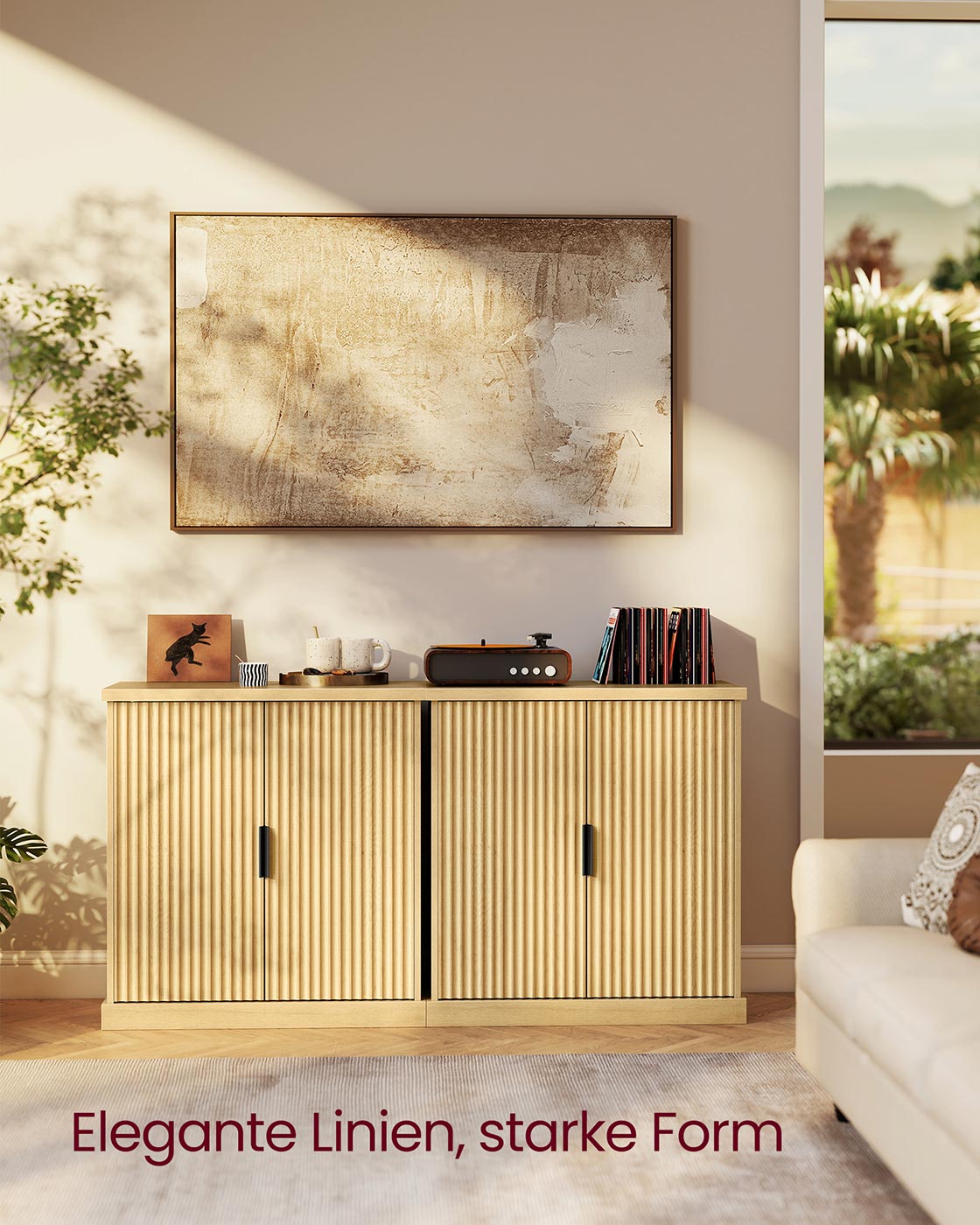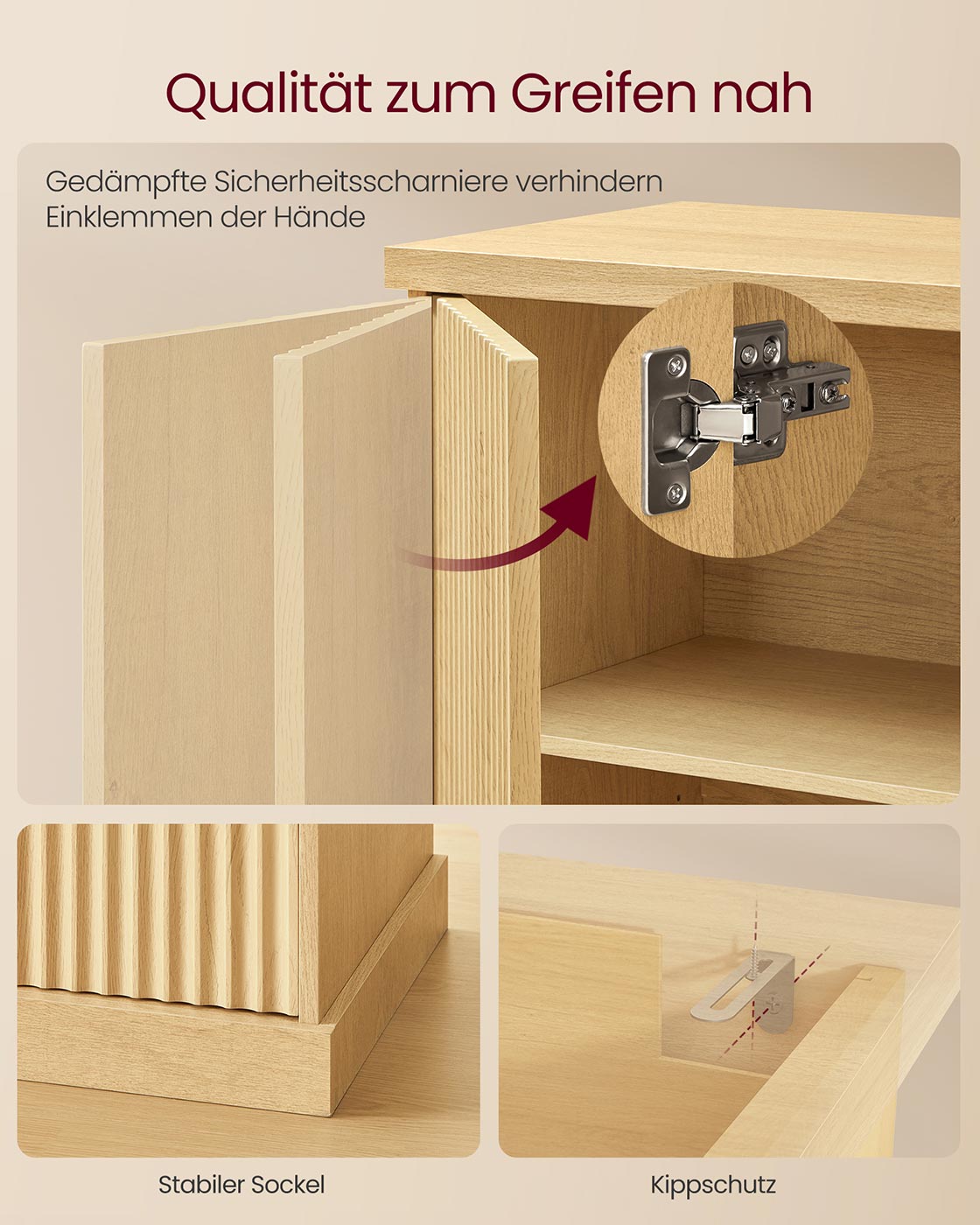 Dressoir met verstelbare plank en gegroefde deuren 40 x 76 x 80 cm